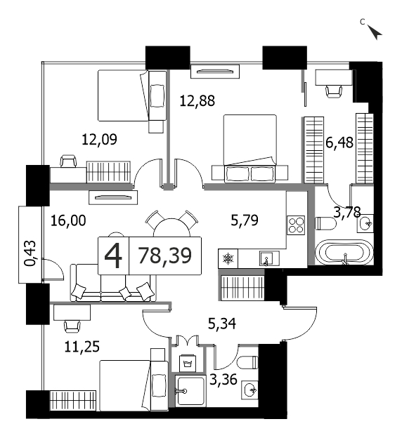 Двухкомнатная квартира 72.57 м², 3 этаж, ЖК «ЛАЙФ Варшавская» (LIFE)