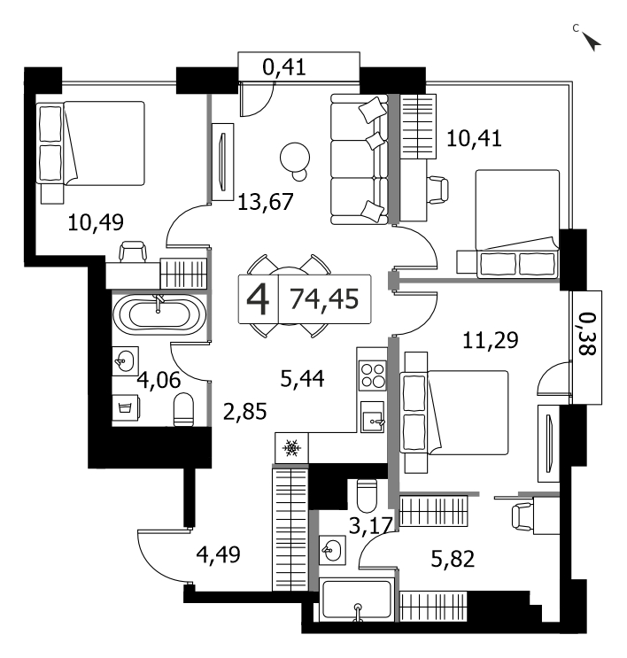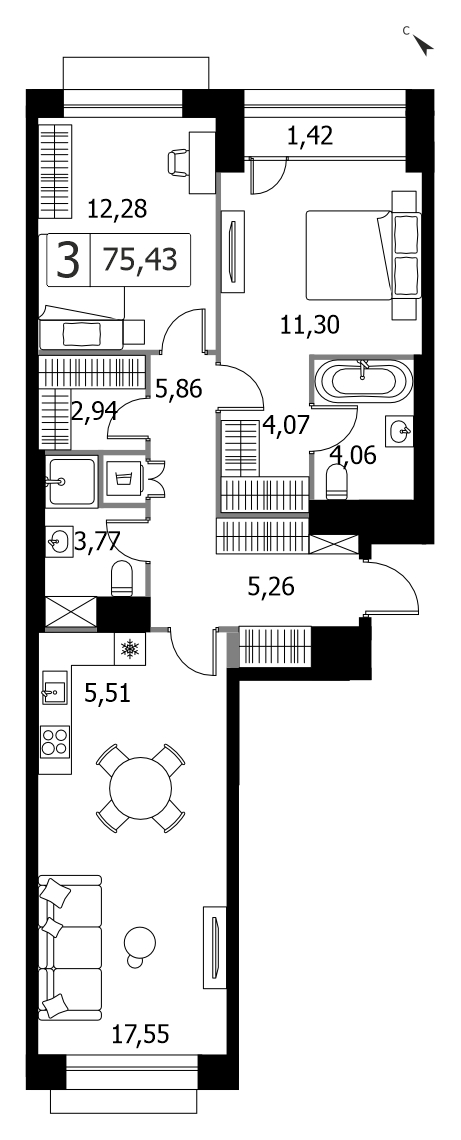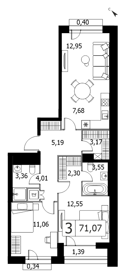 Двухкомнатная квартира 70.86 м², 8 этаж, ЖК «ЛАЙФ Варшавская» (LIFE)