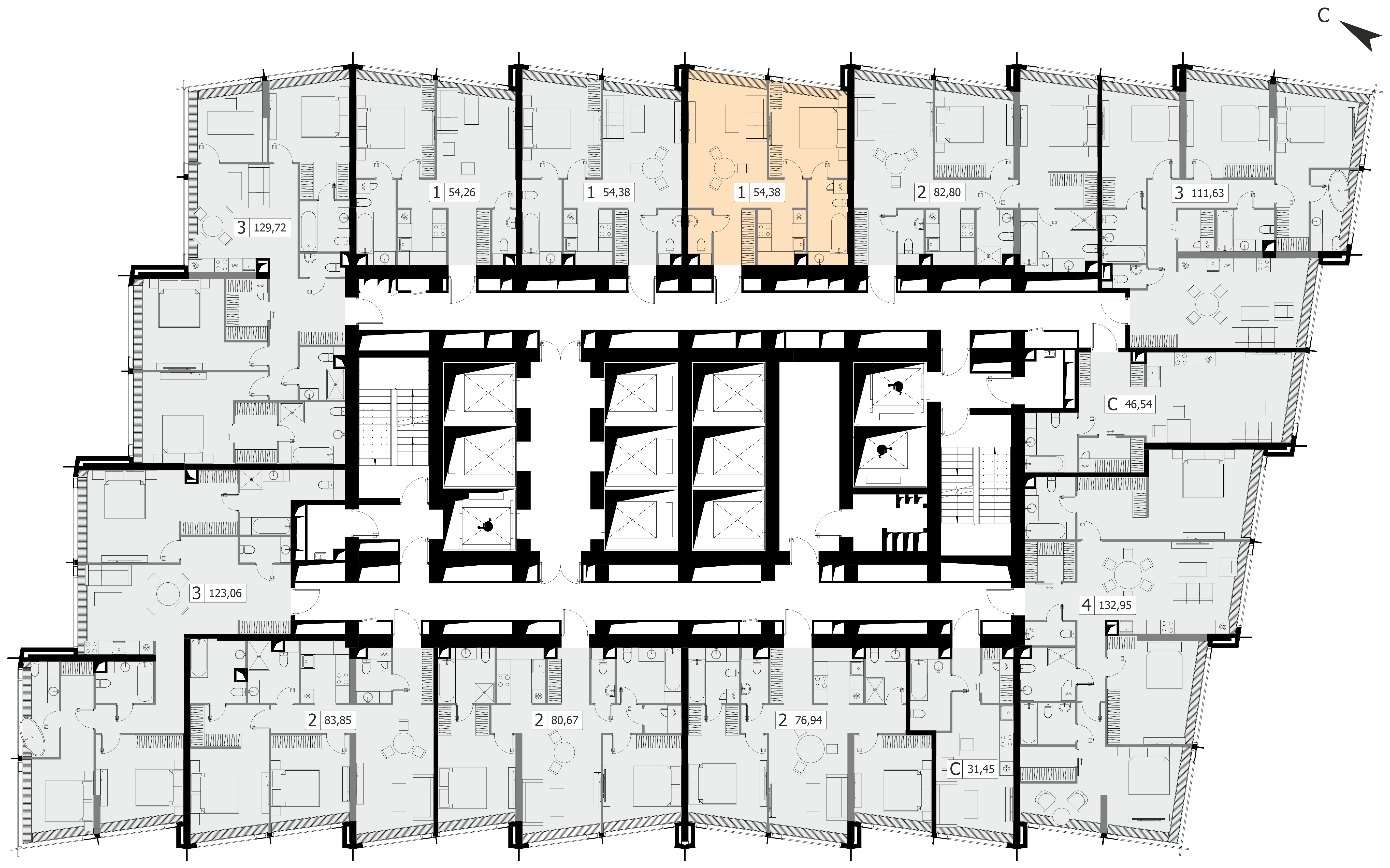 Комфортная двухкомнатная квартира квартира площадью 54.38 м² без отделки. Лот расположен на 22 этаже, корпуса 1 МФК «Дом Дау».Комплекс находится по адресу: г. Москва, Пресненская наб., вл. 14/15, срок сдачи 2027г.. Это соединение удобной инфраструктуры городской застройки и зеленых зон отдыха.