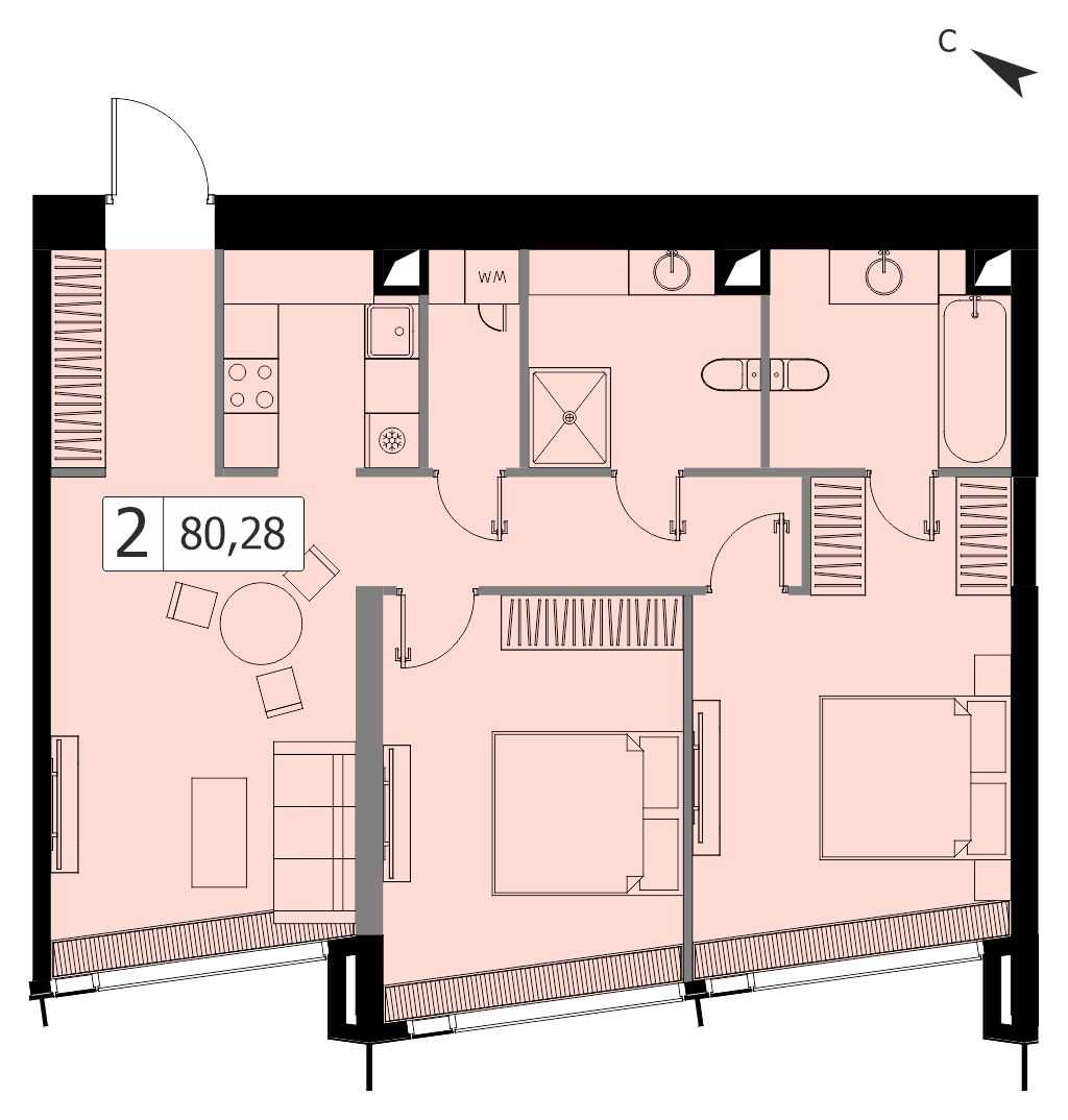Двухкомнатная квартира №424, 81.15 м², 36 этаж, МФК «Дом Дау»