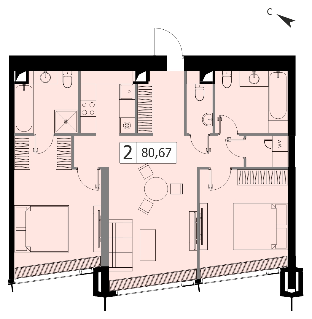 Двухкомнатная квартира 82.45 м², 53 этаж, МФК «Дом Дау»