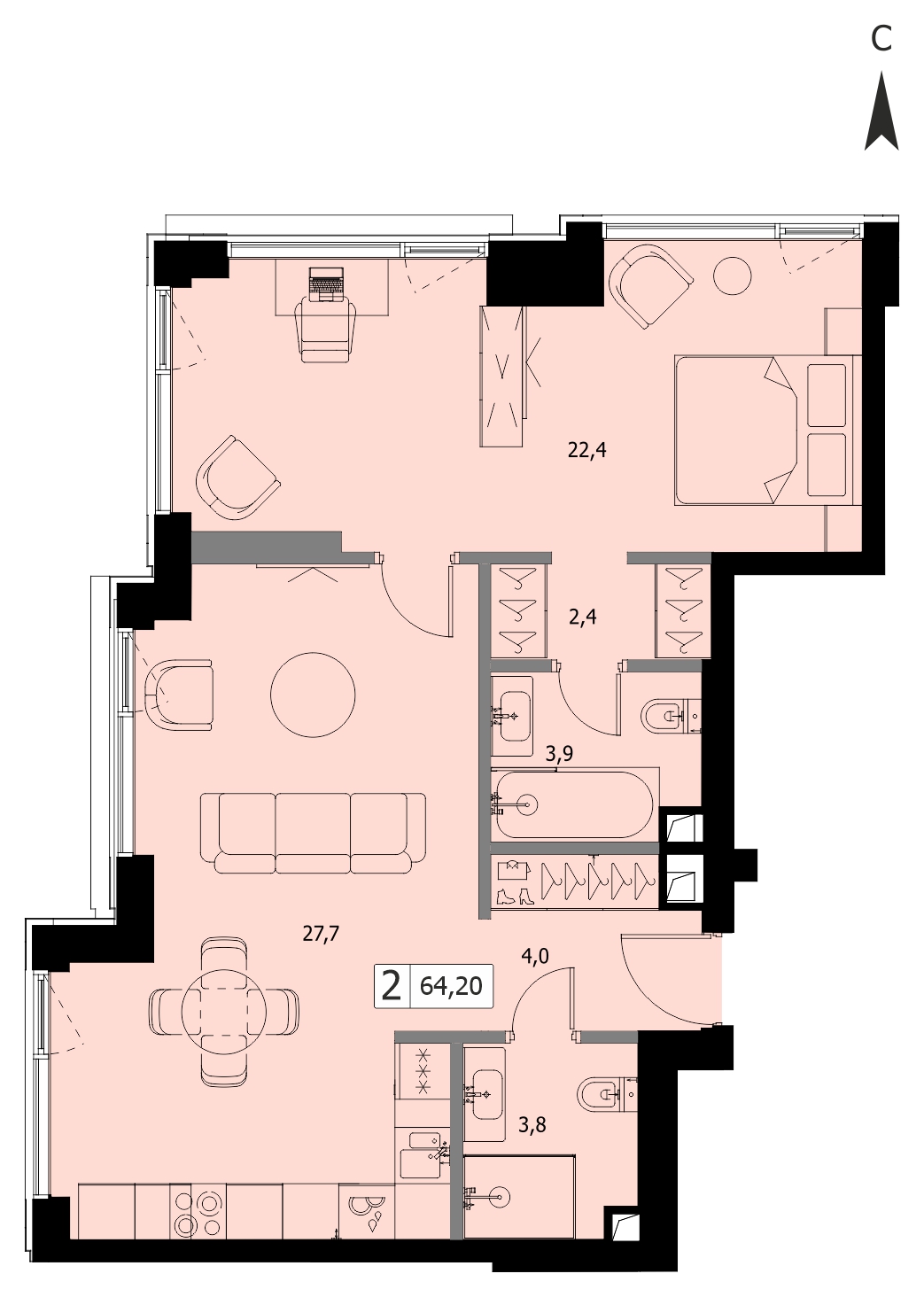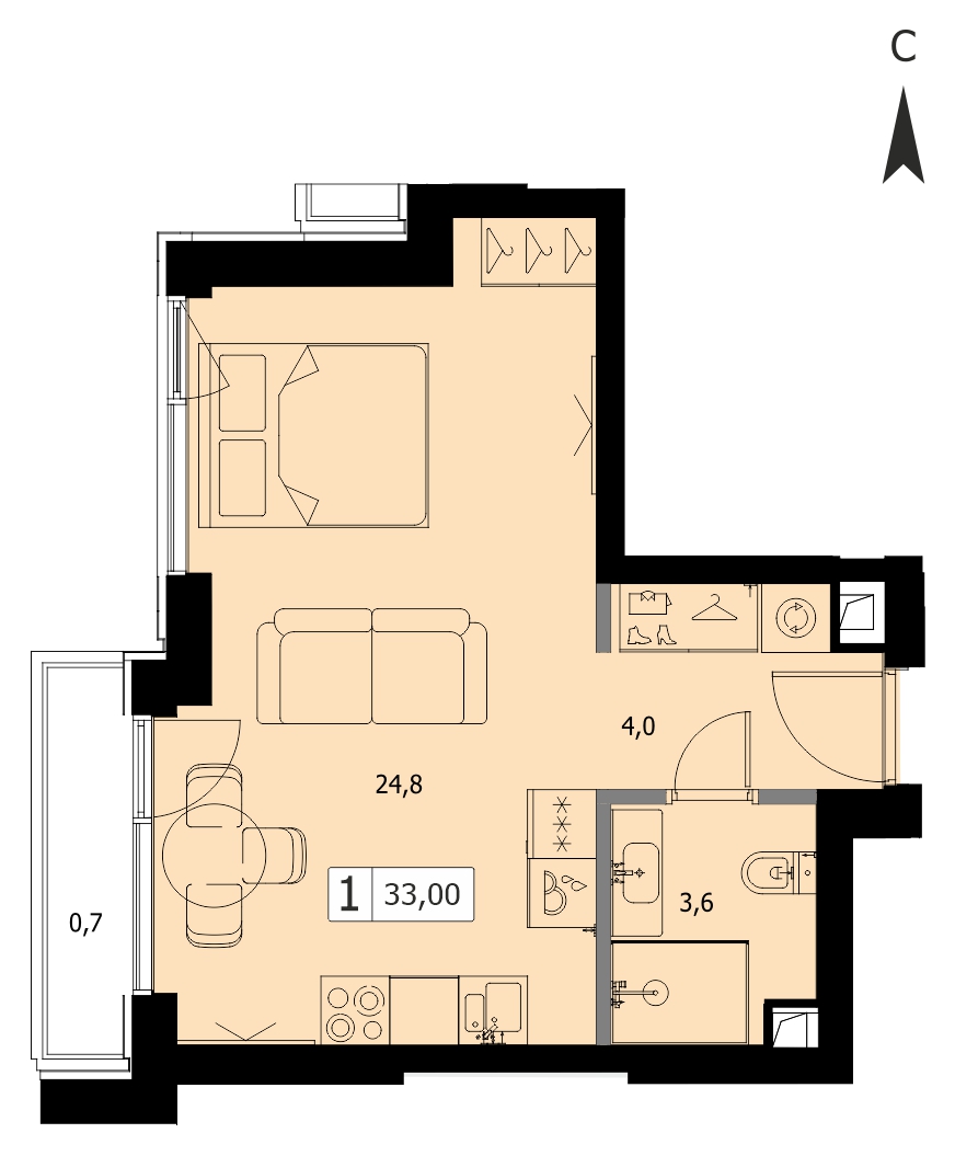 Однокомнатная квартира 68 м², 24 этаж, ЖК «ХАЙД» (HIDE)