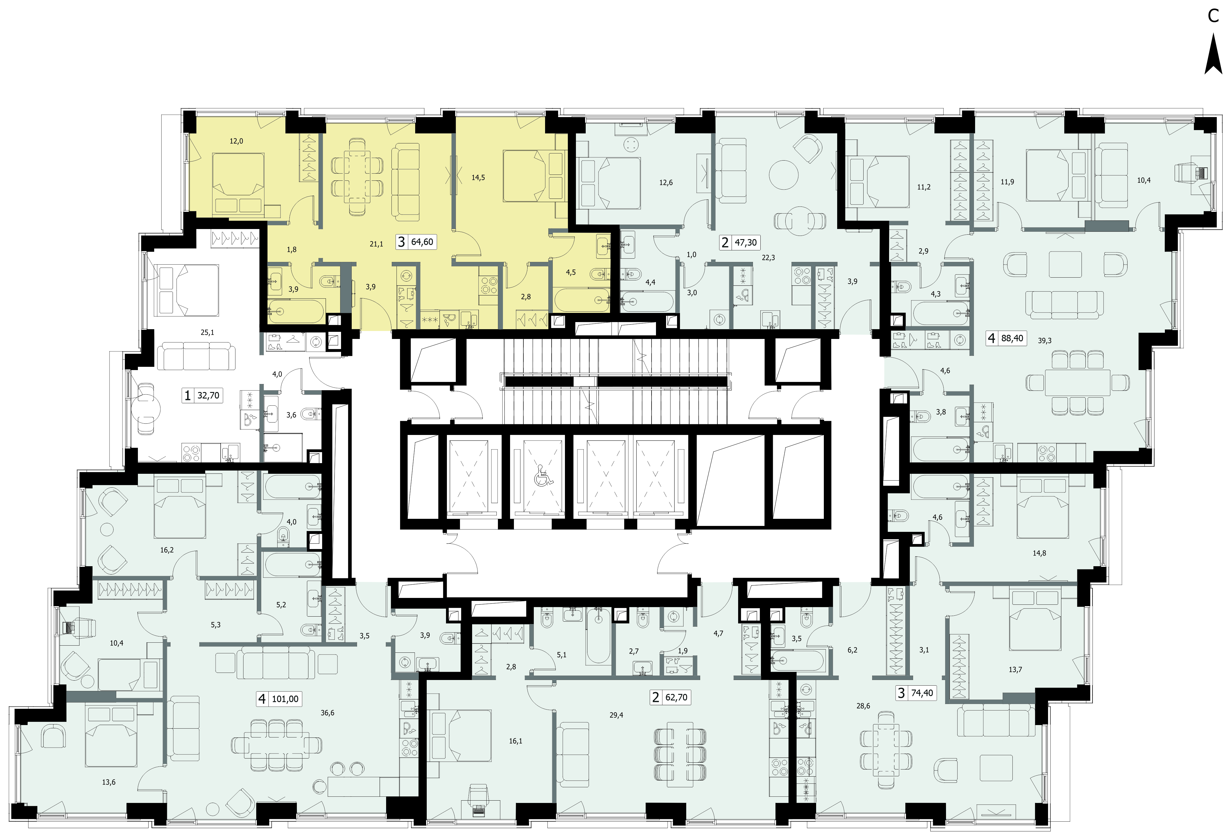 Двухкомнатная квартира 65.8 м², 31 этаж, ЖК «ХАЙД» (HIDE)