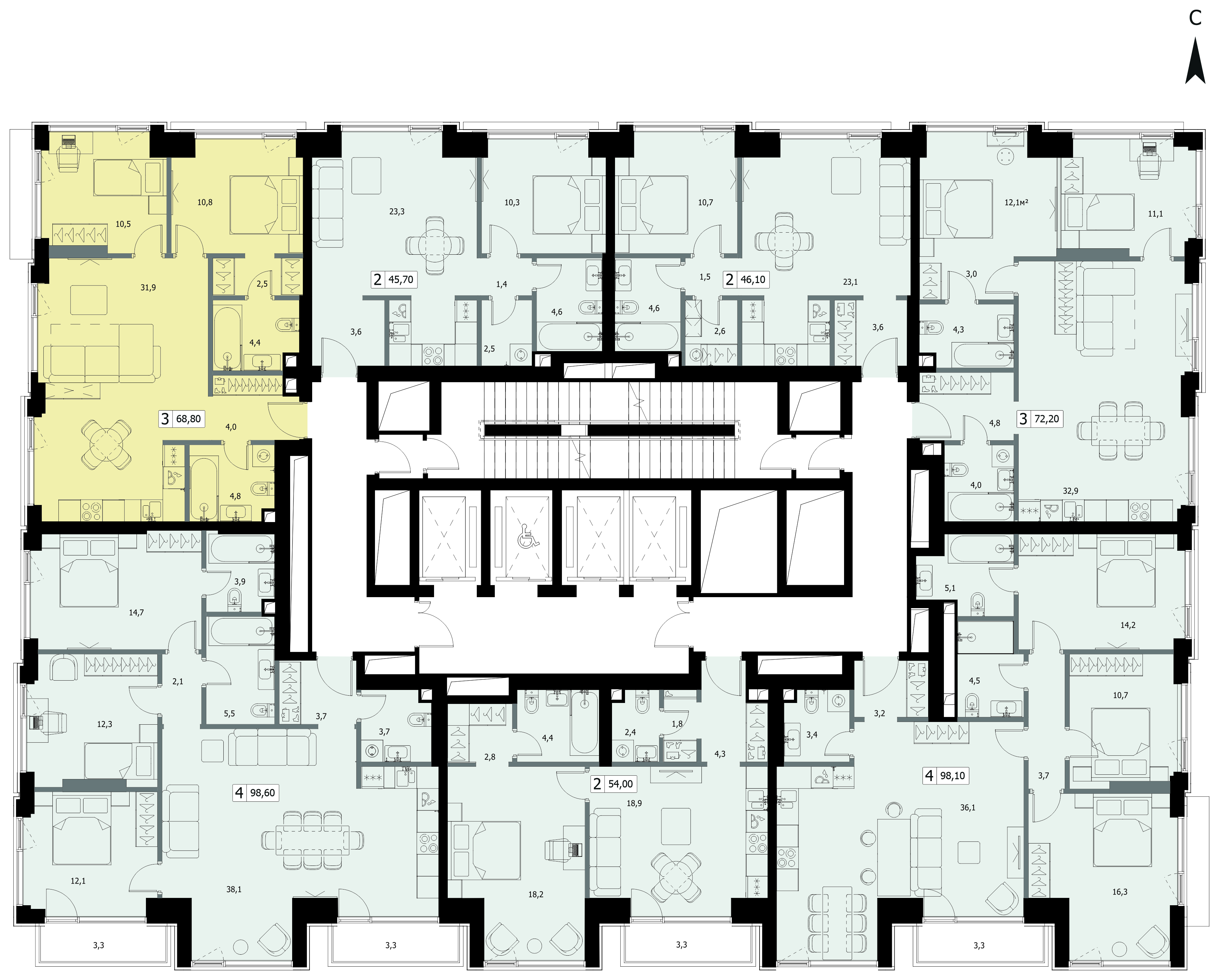 Здания этажностью эт. отличаются современным дизайном и функциональностью. Зеленая благоустроенная территория, приватный двор для жителей дома. В ЖК «ХАЙД» (HIDE) предлагаются удобные квартиры площадью от 35.9 м² до 118.8 м² с различной оснащенностью. Есть возможность покупки квартиры в ипотеку.
