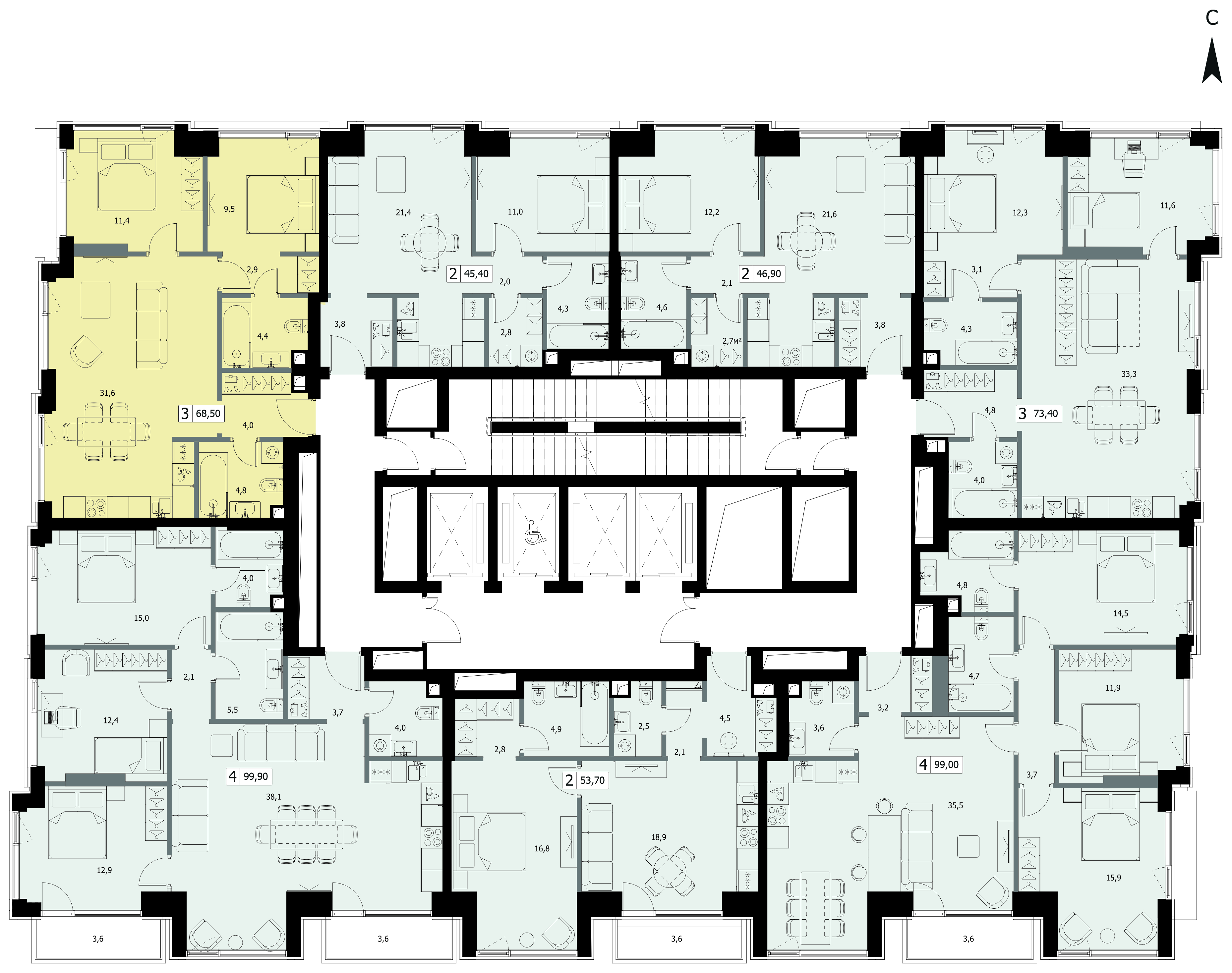 Двухкомнатная квартира 69.1 м², 21 этаж, ЖК «ХАЙД» (HIDE)