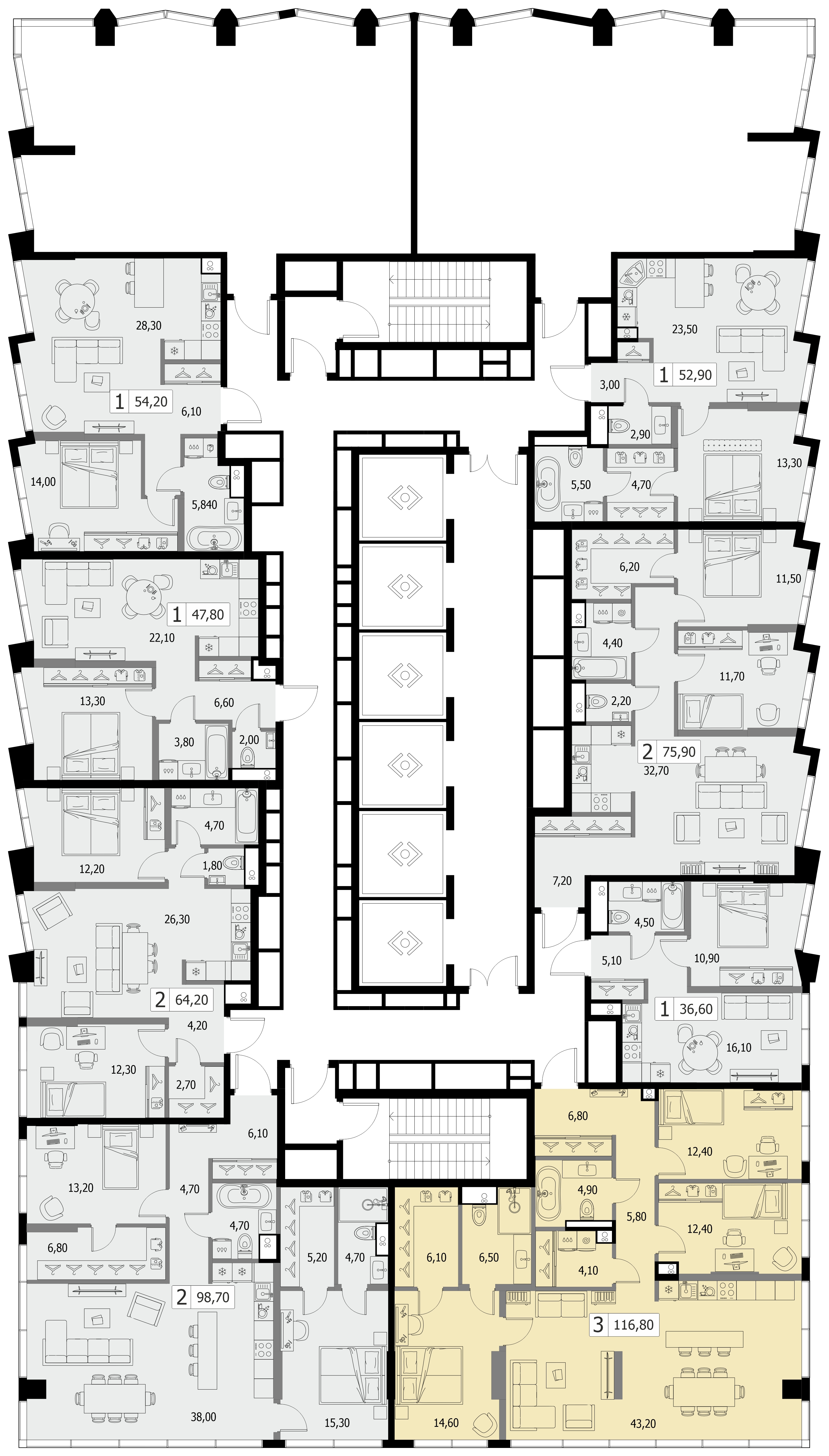Комфортная трехкомнатная квартира квартира площадью 116.4 м² без отделки. Лот расположен на 43 этаже, корпуса 7.3 жилого комплекса «Северный порт».Комплекс находится по адресу: г. Москва, Ленинградское шоссе, срок сдачи 2028г.. Это соединение удобной инфраструктуры городской застройки и зеленых зон отдыха.