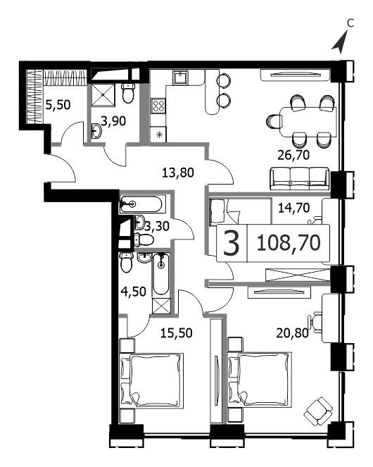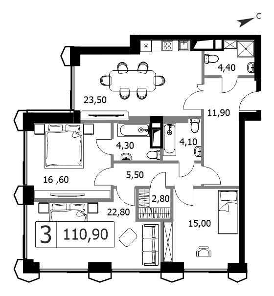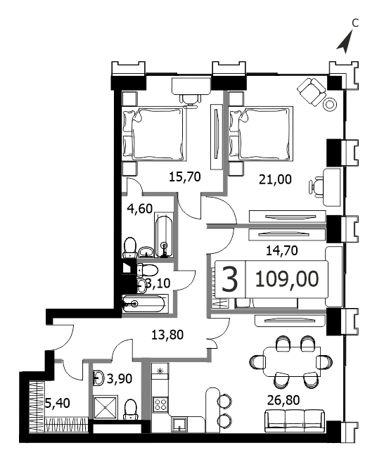 Комфортная четырехкомнатная квартира квартира площадью 112.6 м² без отделки. Лот расположен на 37 этаже, корпуса 3 жилого комплекса «Will Towers» (Уилл Тауэрс).Комплекс находится по адресу: г. Москва, пр. Генерала Дорохова, срок сдачи Сдан. Это соединение удобной инфраструктуры городской застройки и зеленых зон отдыха.