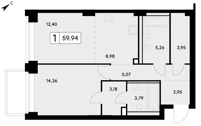 Однокомнатная квартира №438, 41.72 м², 11 этаж, Жилой комплекс «NOVA» (Нова)