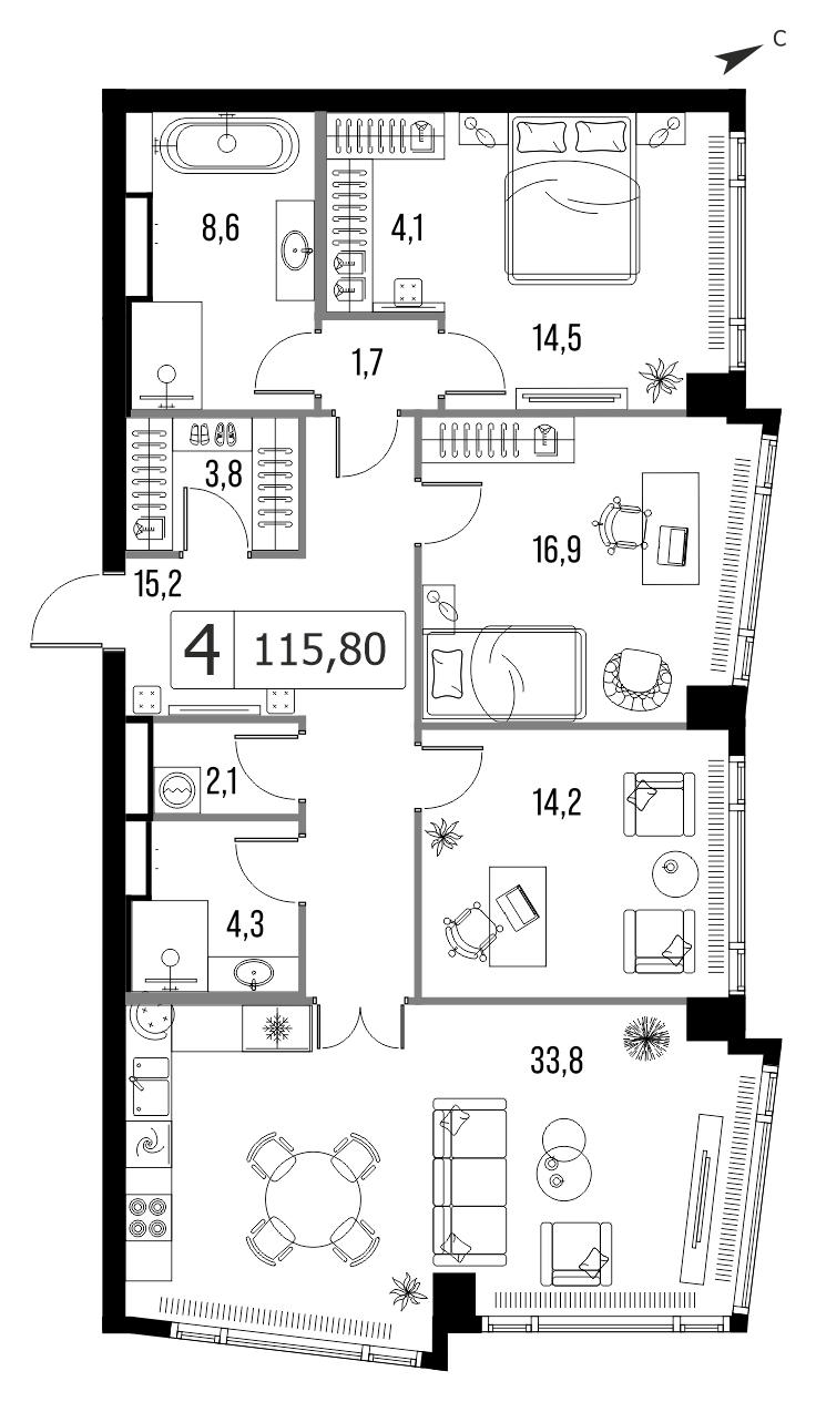 Комфортная четырехкомнатная квартира квартира площадью 121 м² без отделки. Лот расположен на 10 этаже, корпуса 4 (Seanse Tower) жилого комплекса «HIGH LIFE» (Хай Лайф).Комплекс находится по адресу: г. Москва, Летниковская, срок сдачи 2027г.. Это соединение удобной инфраструктуры городской застройки и зеленых зон отдыха.
