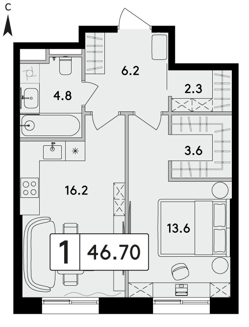 Однокомнатная квартира №150, 49.9 м², 16 этаж, Жилой комплекс «SOKOLNIKI» (Сокольники)
