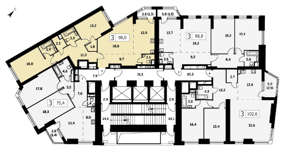 Трехкомнатная квартира №1286, 98 м², 5 этаж, Жилой комплекс «Архитектор»