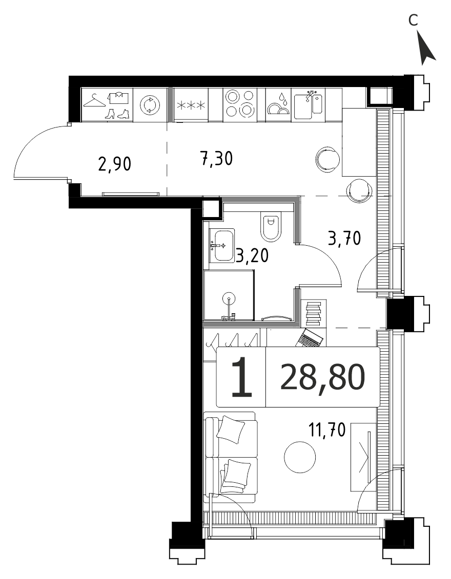 Однокомнатная квартира 27.53 м², 37 этаж, ЖК «СЕТ» (SET)