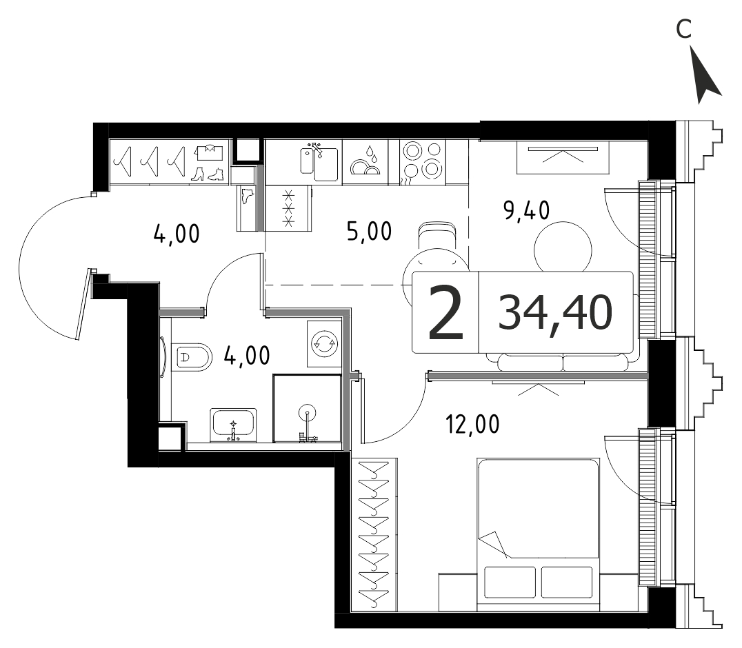 Однокомнатная квартира 35.81 м², 24 этаж, ЖК «СЕТ» (SET)