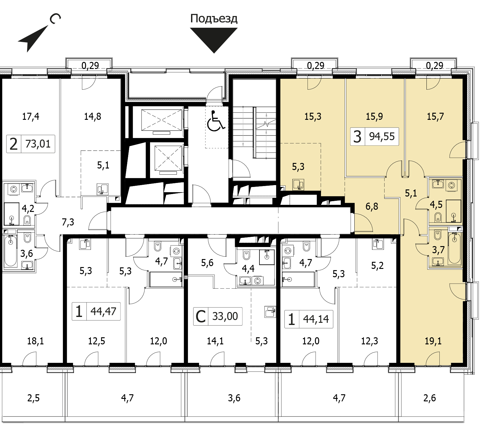 Трехкомнатная квартира 95.12 м², 2 этаж, ЖК «Селигер Сити»
