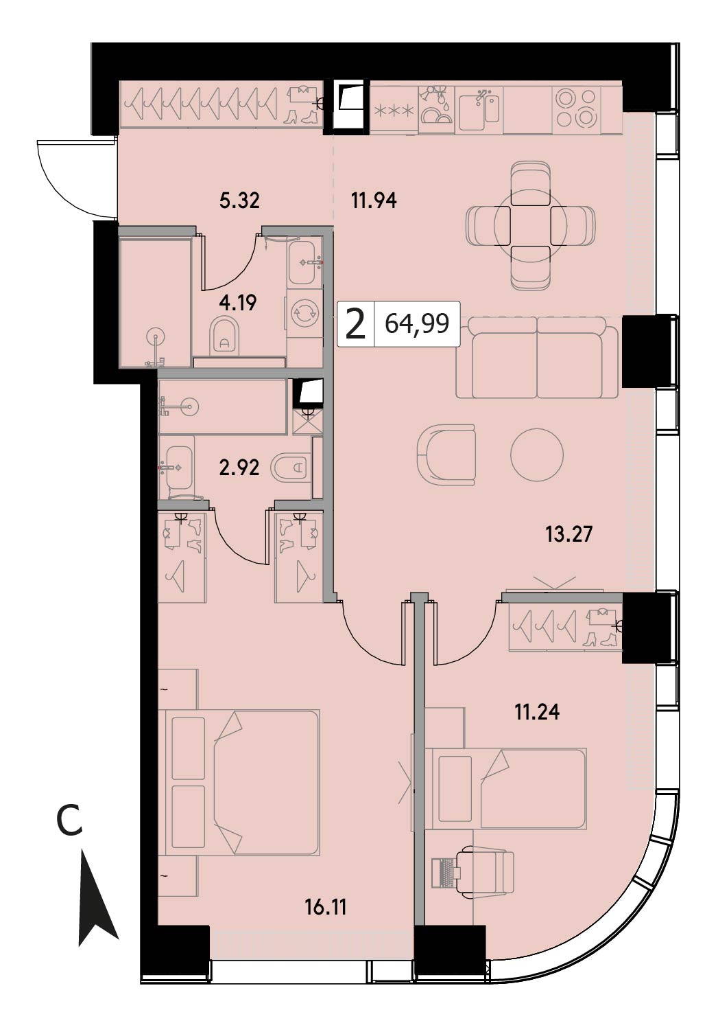Трехкомнатная квартира 67.9 м², 13 этаж, ЖК «ВЕЕР» (VEER)