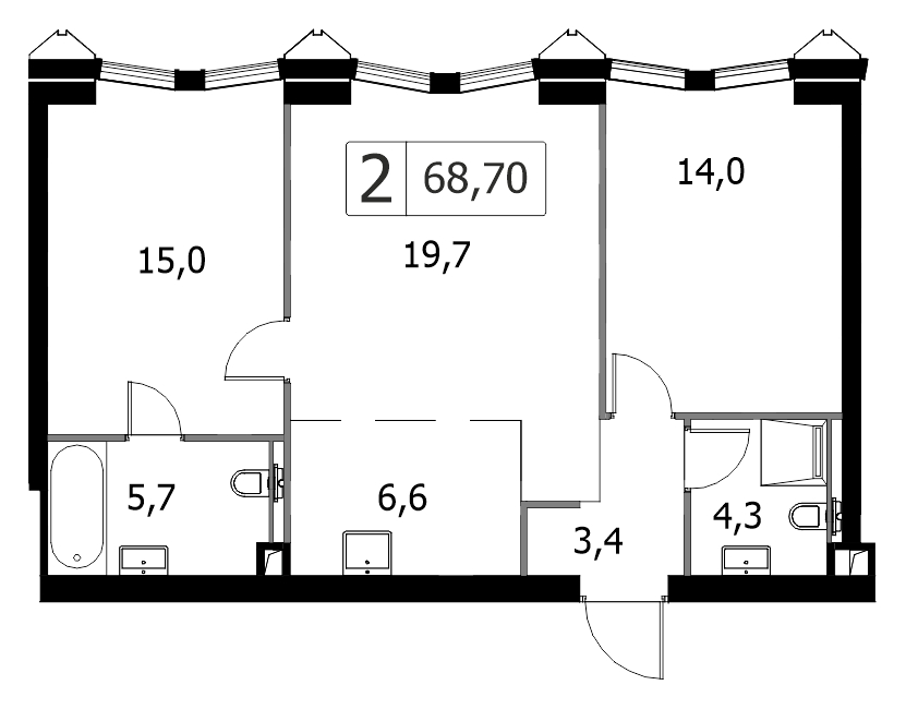 Однокомнатная квартира №442, 67.6 м², 5 этаж, МФК «Мангазея на Тульской»