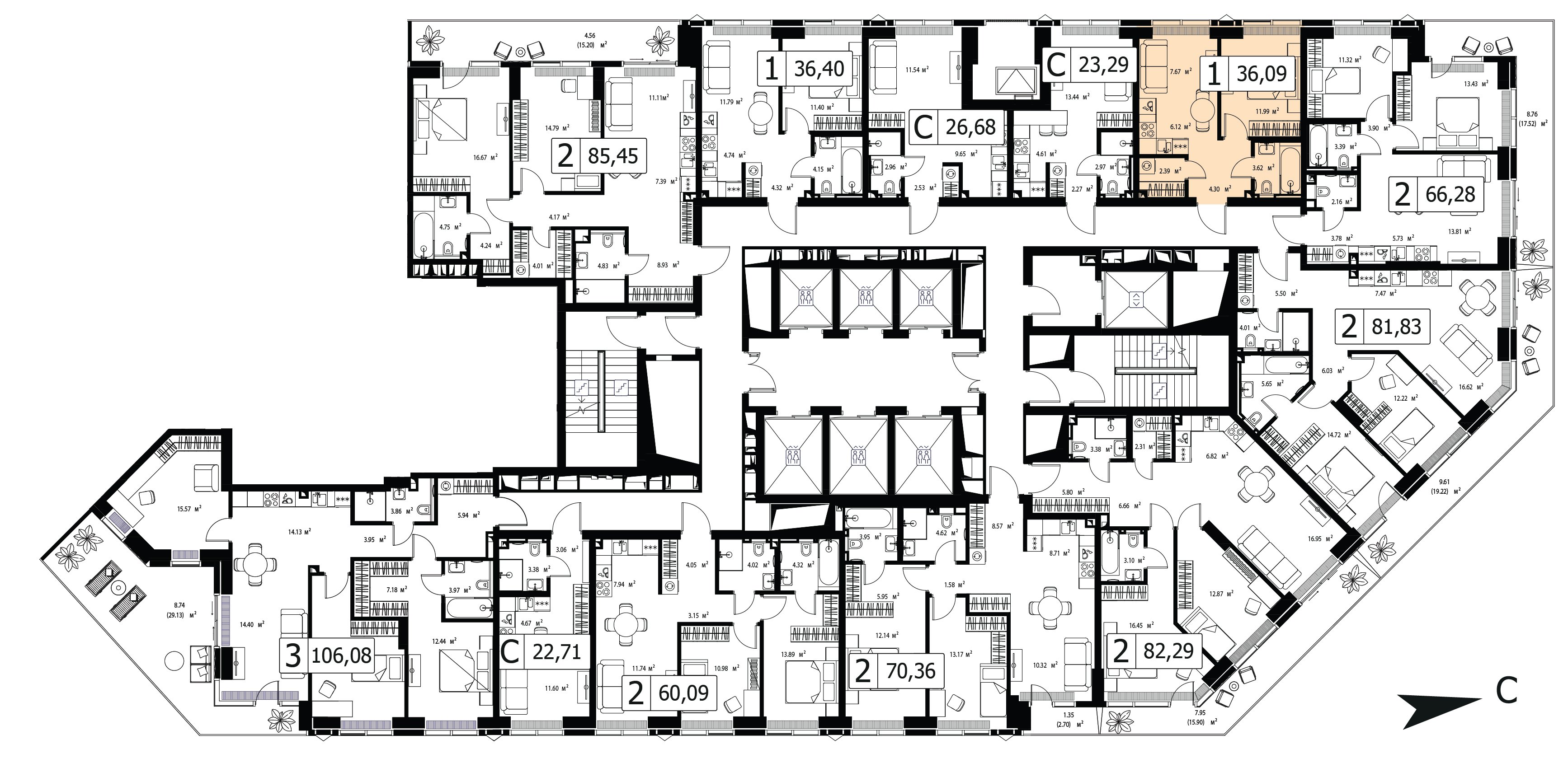 Однокомнатная квартира №11108, 36.09 м², 11 этаж, «JOIS» (Джойс)