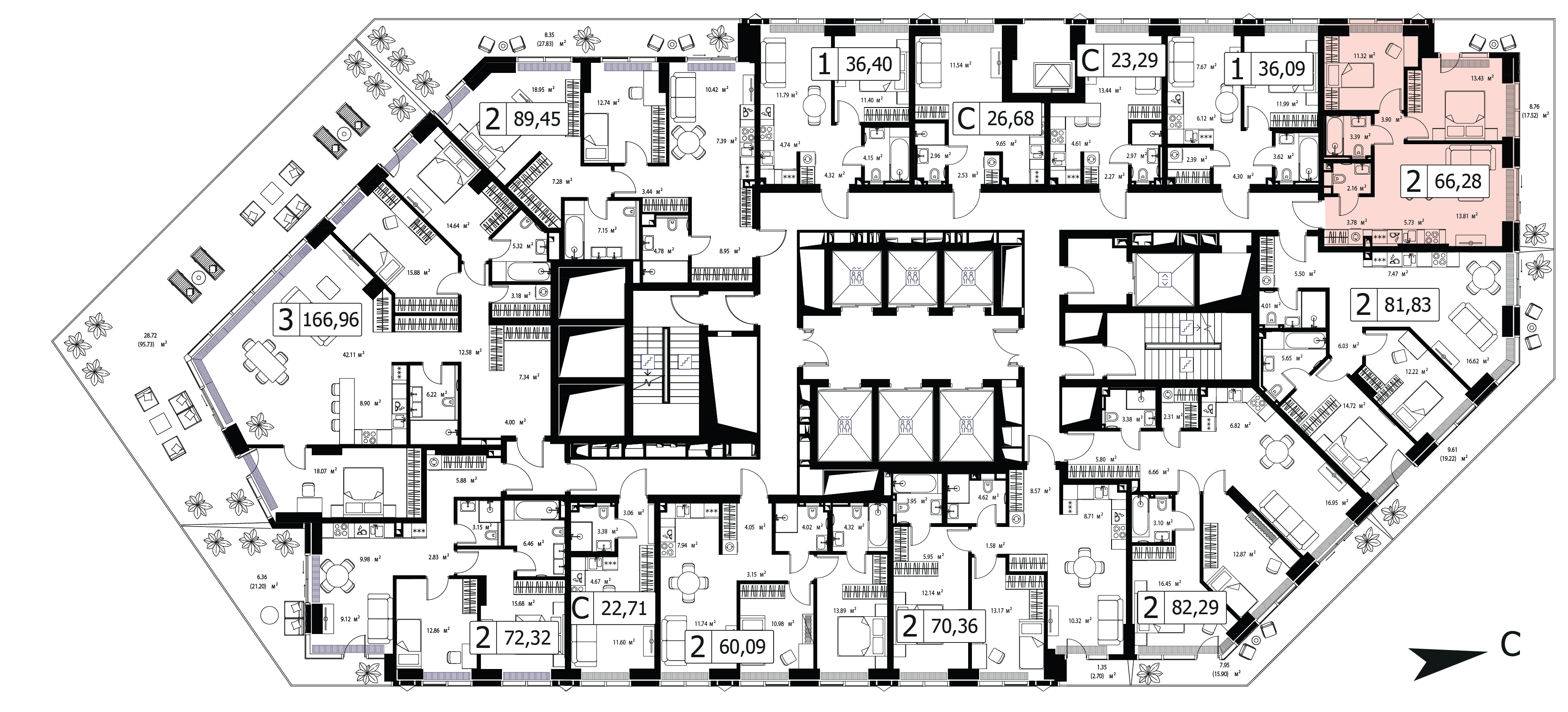 Двухкомнатная квартира №11210, 66.23 м², 12 этаж, «JOIS» (Джойс)