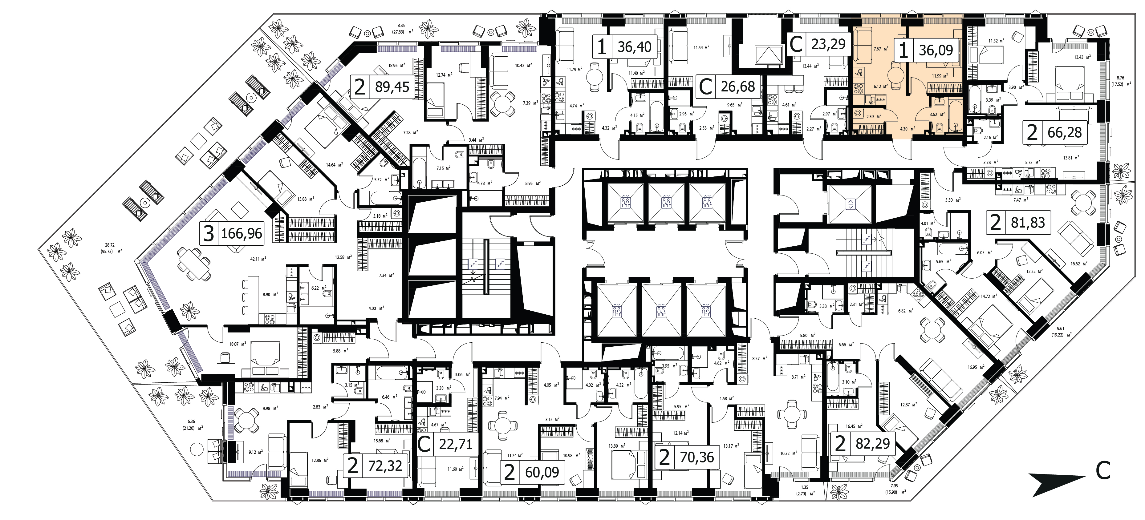 Однокомнатная квартира №11209, 36.09 м², 12 этаж, «JOIS» (Джойс)