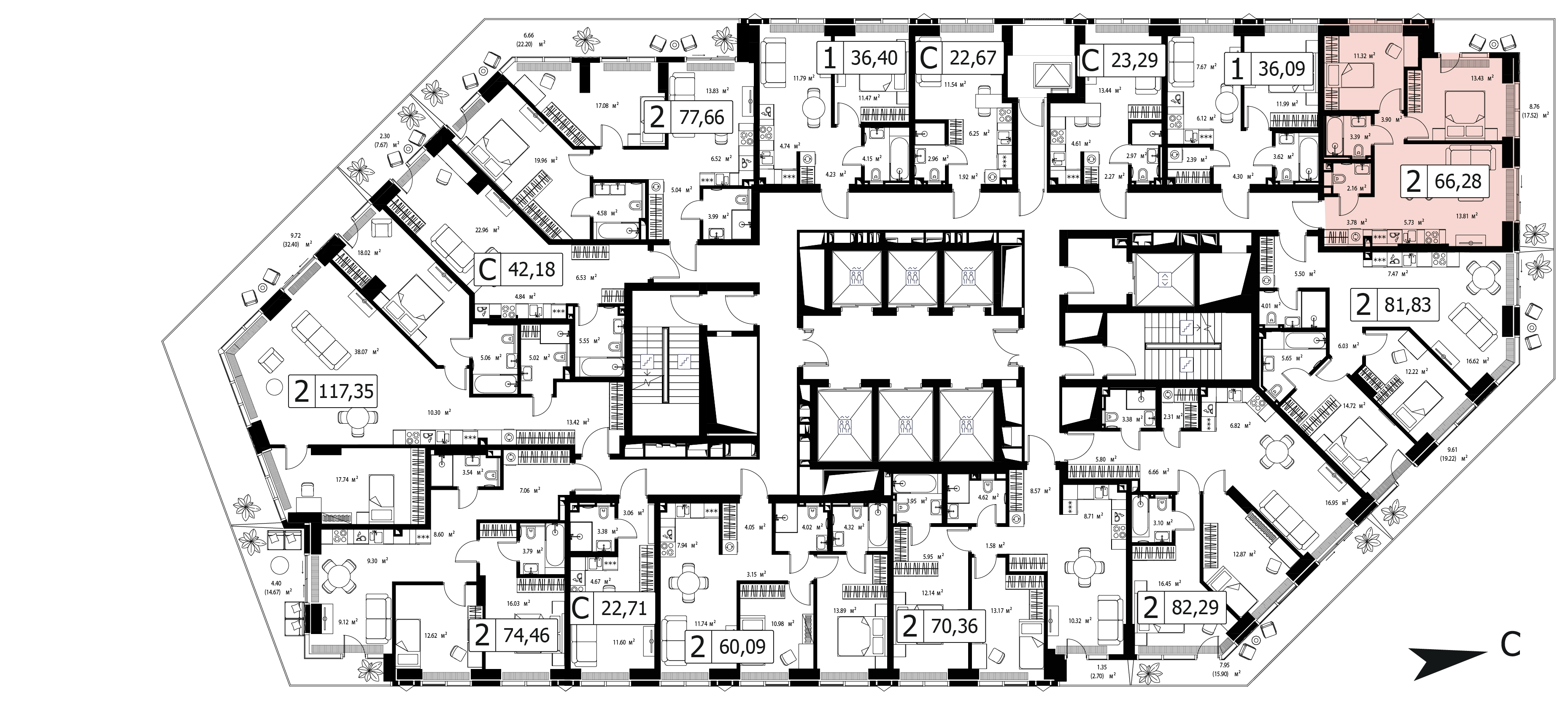 Двухкомнатная квартира №11411, 66.28 м², 14 этаж, «JOIS» (Джойс)