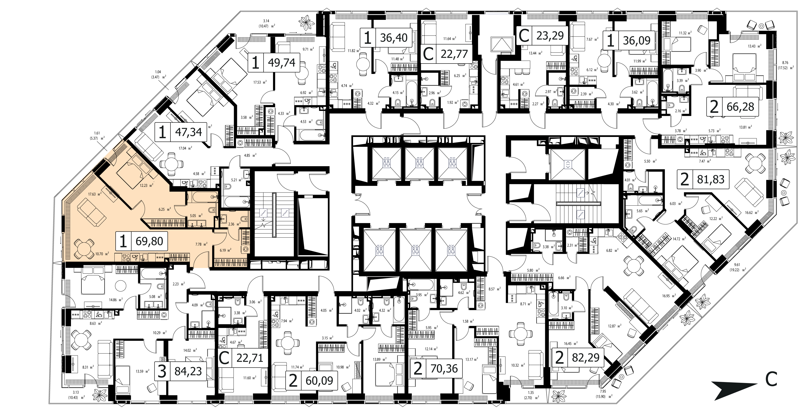 Однокомнатная квартира №11904, 69.8 м², 19 этаж, «JOIS» (Джойс)