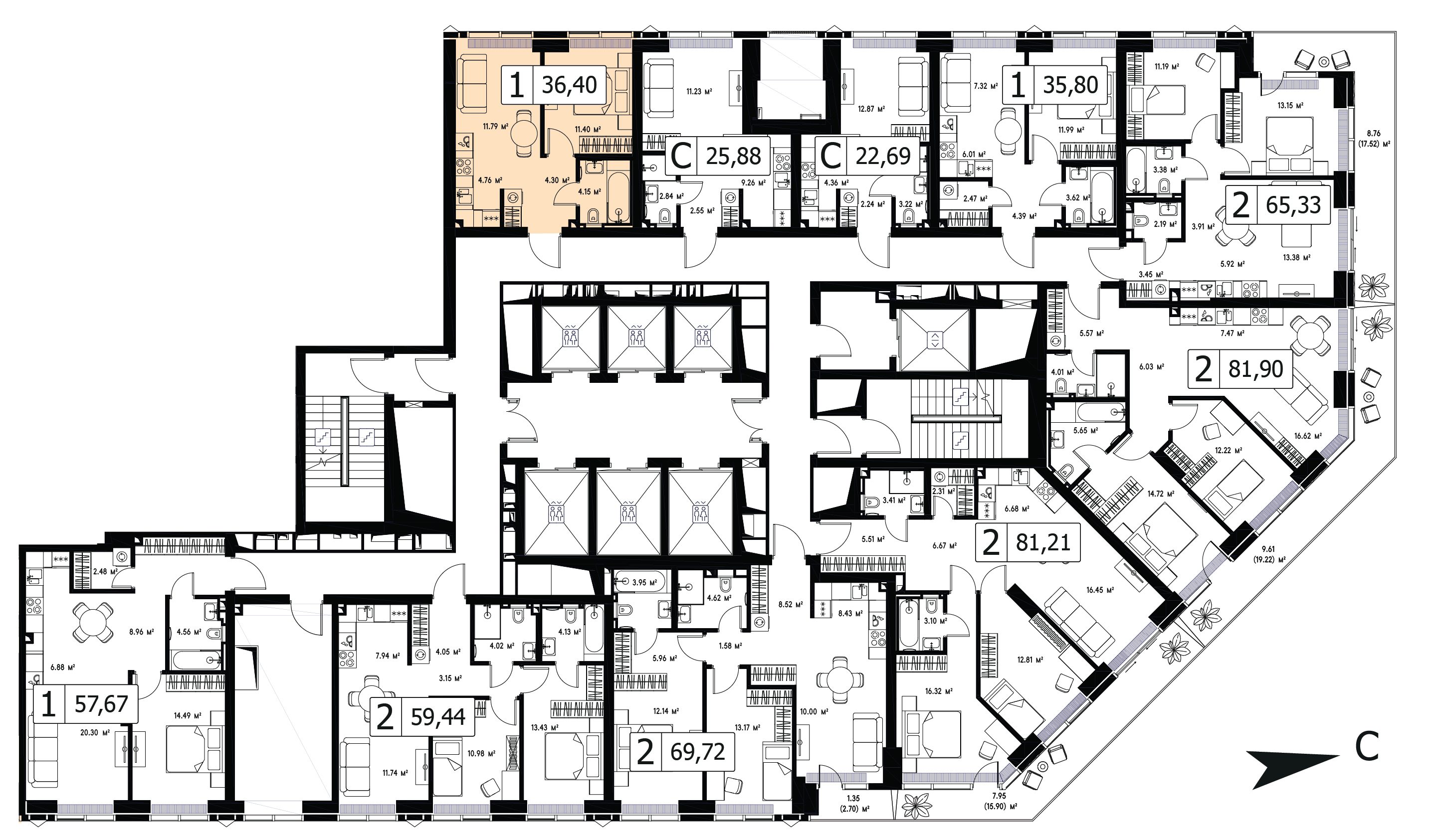 Однокомнатная квартира №10203, 36.4 м², 2 этаж, «JOIS» (Джойс)