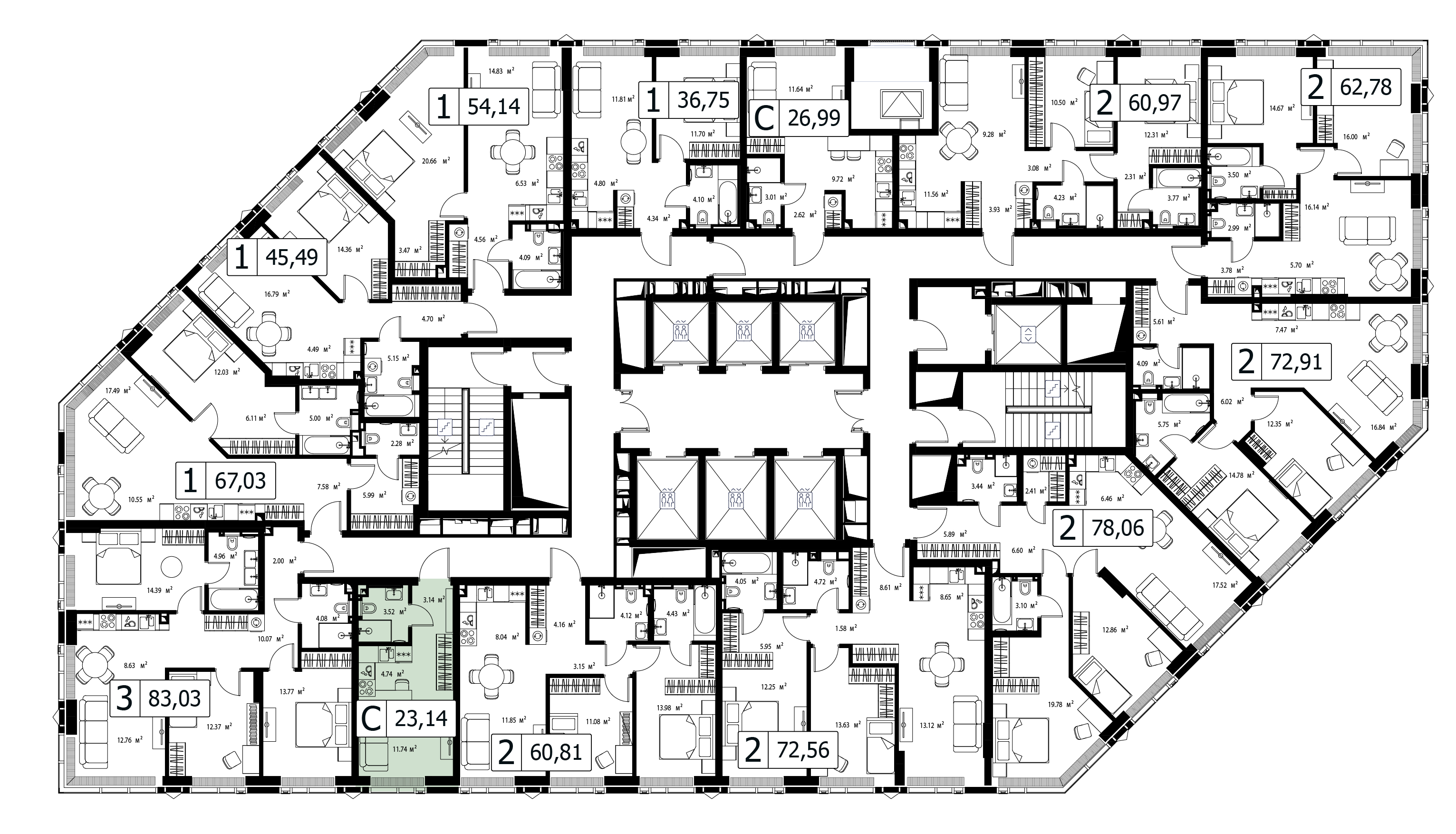 Однокомнатная квартира №14502, 23.21 м², 45 этаж, «JOIS» (Джойс)