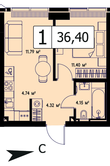 54.79 м²