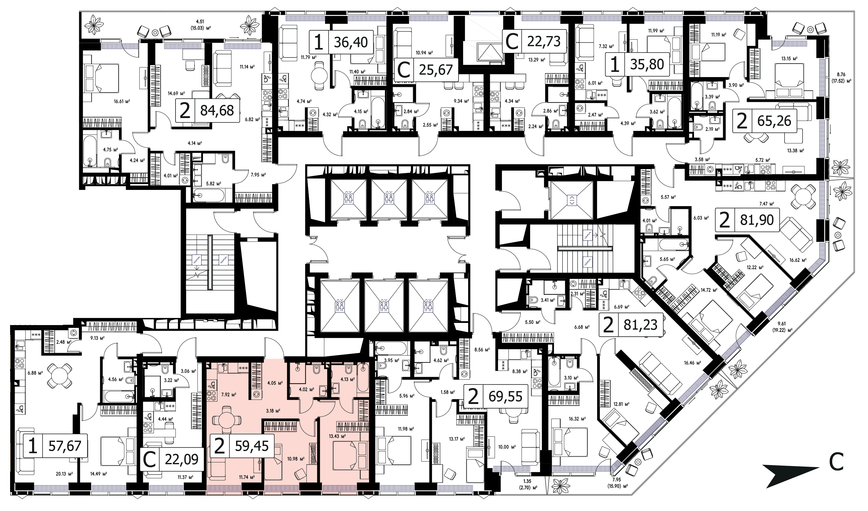 Однокомнатная квартира №20301, 70.33 м², 3 этаж, «JOIS» (Джойс)