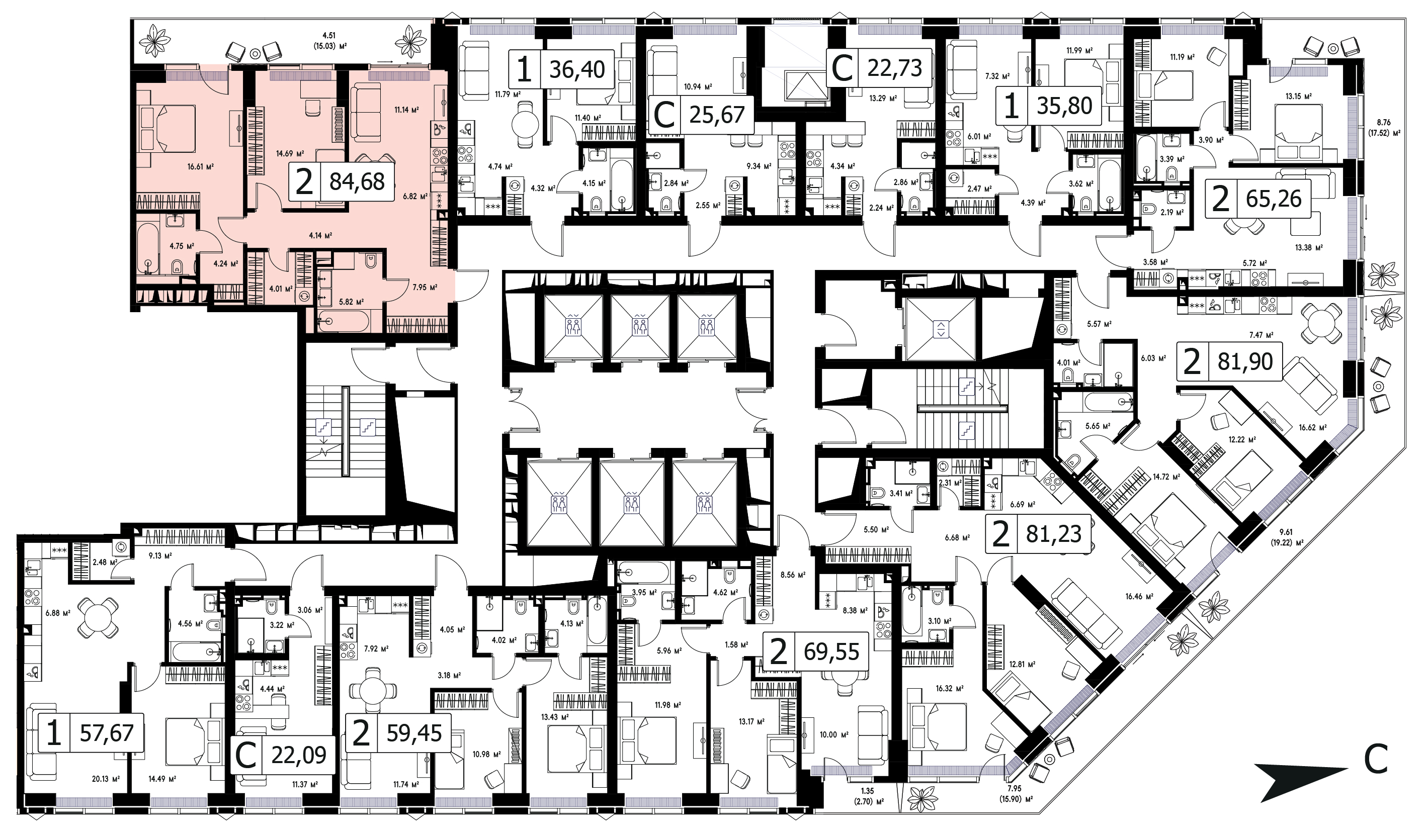 Двухкомнатная квартира №20304, 68.34 м², 3 этаж, «JOIS» (Джойс)