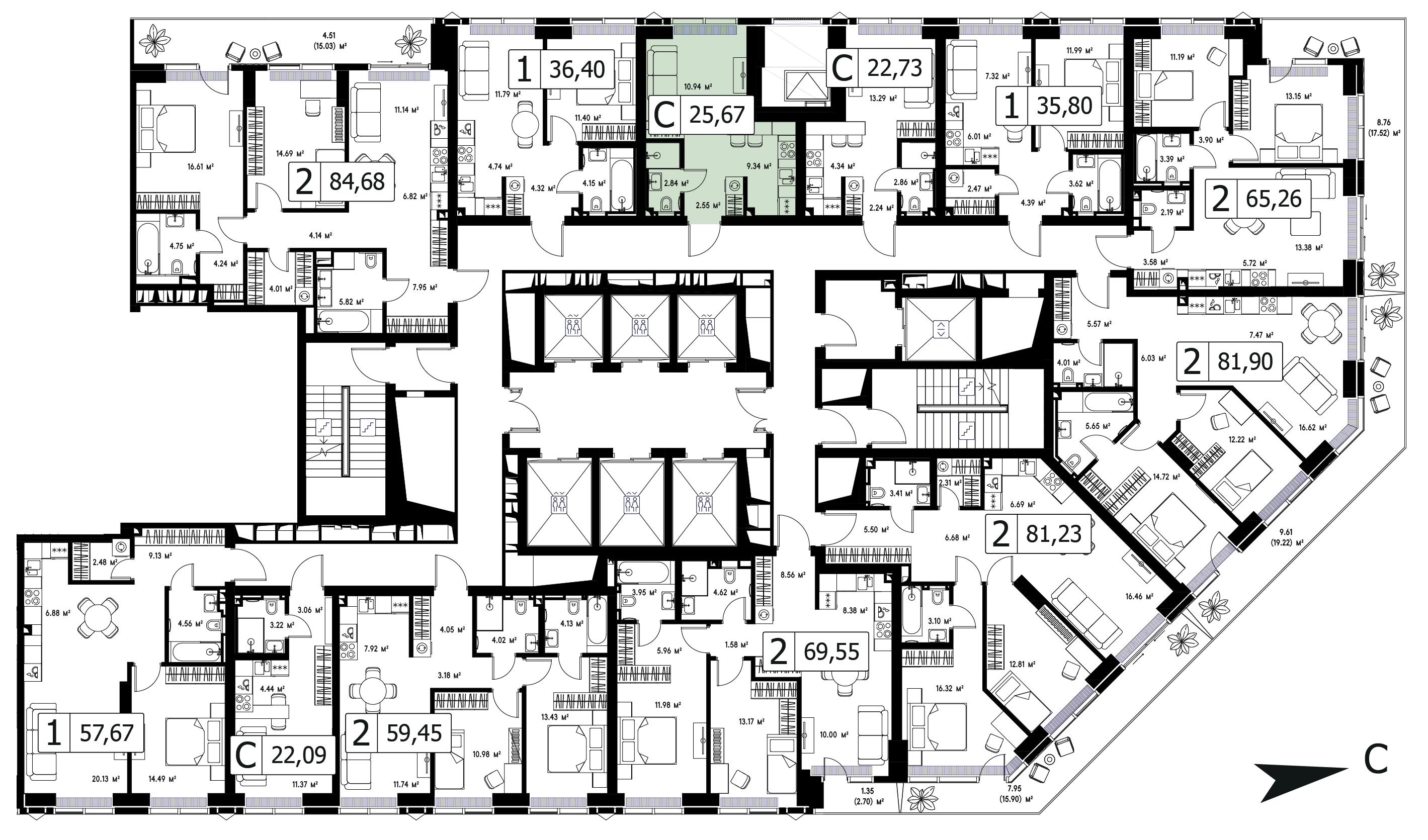 Двухкомнатная квартира №20306, 89.33 м², 3 этаж, «JOIS» (Джойс)