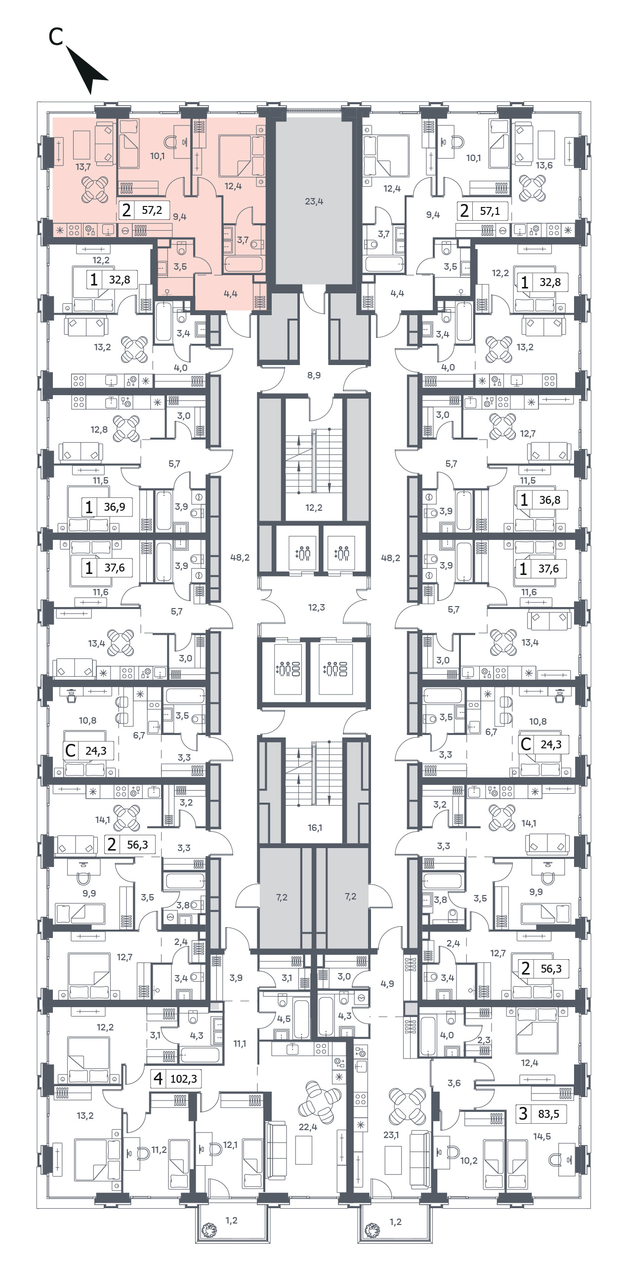 Двухкомнатная квартира №561, 57.2 м², 11 этаж, Жилой комплекс «PORTLAND» (Портленд)