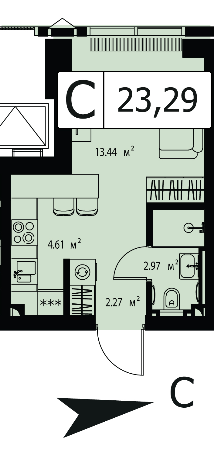 Однокомнатная квартира №11207, 26.68 м², 12 этаж, «JOIS» (Джойс)