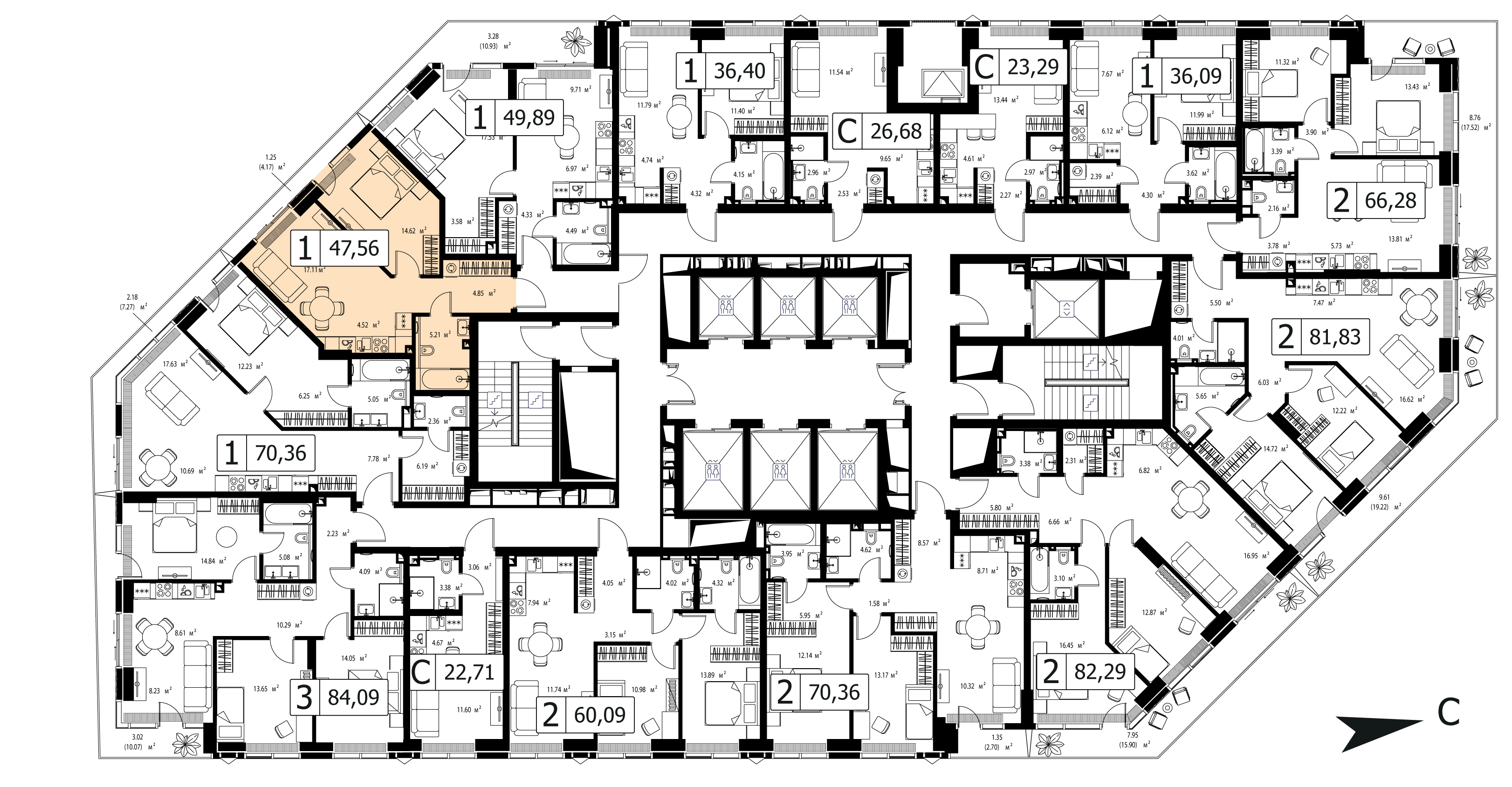 Однокомнатная квартира №11805, 47.56 м², 18 этаж, «JOIS» (Джойс)