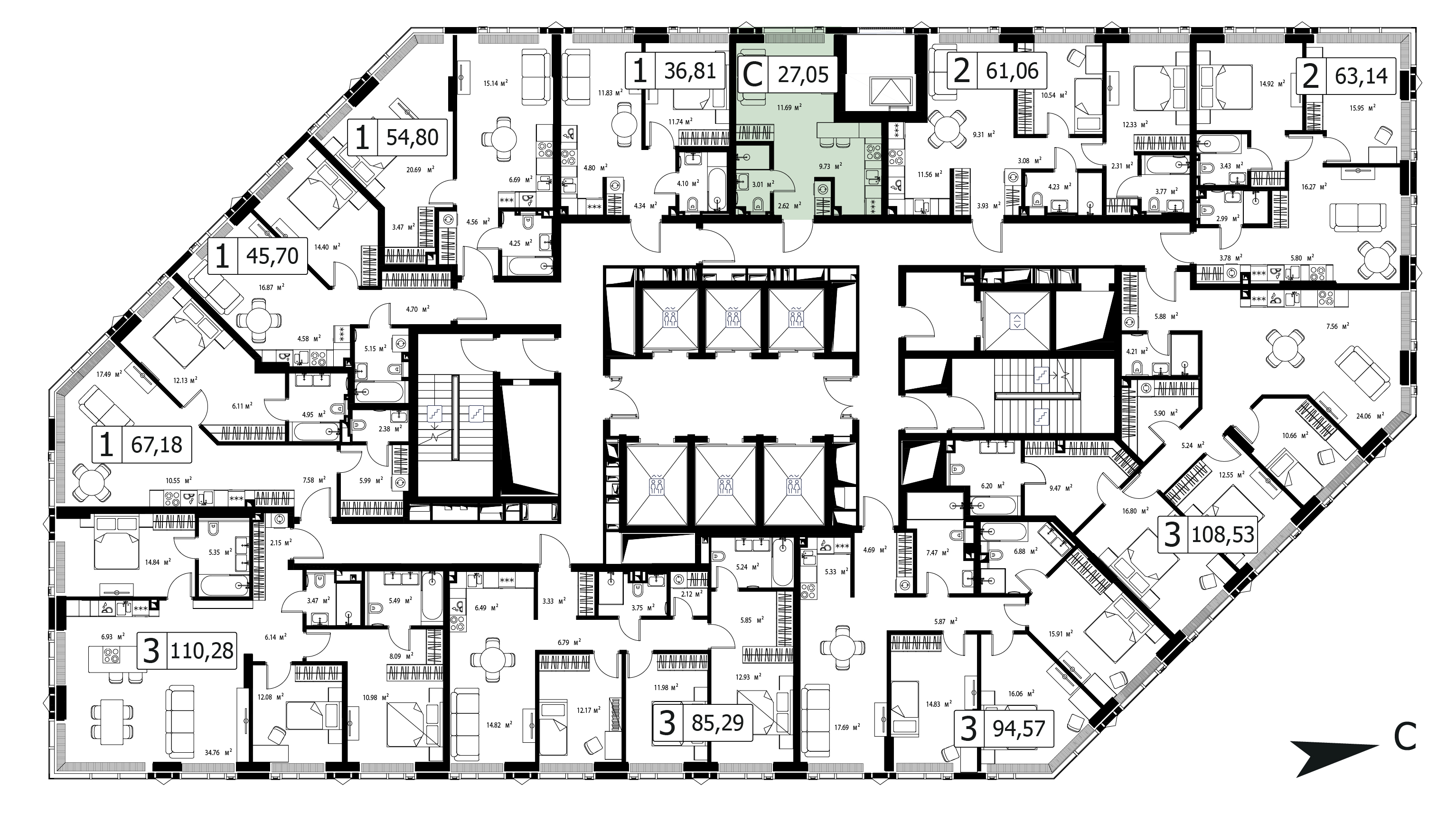 Однокомнатная квартира №15307, 27.04 м², 53 этаж, «JOIS» (Джойс)
