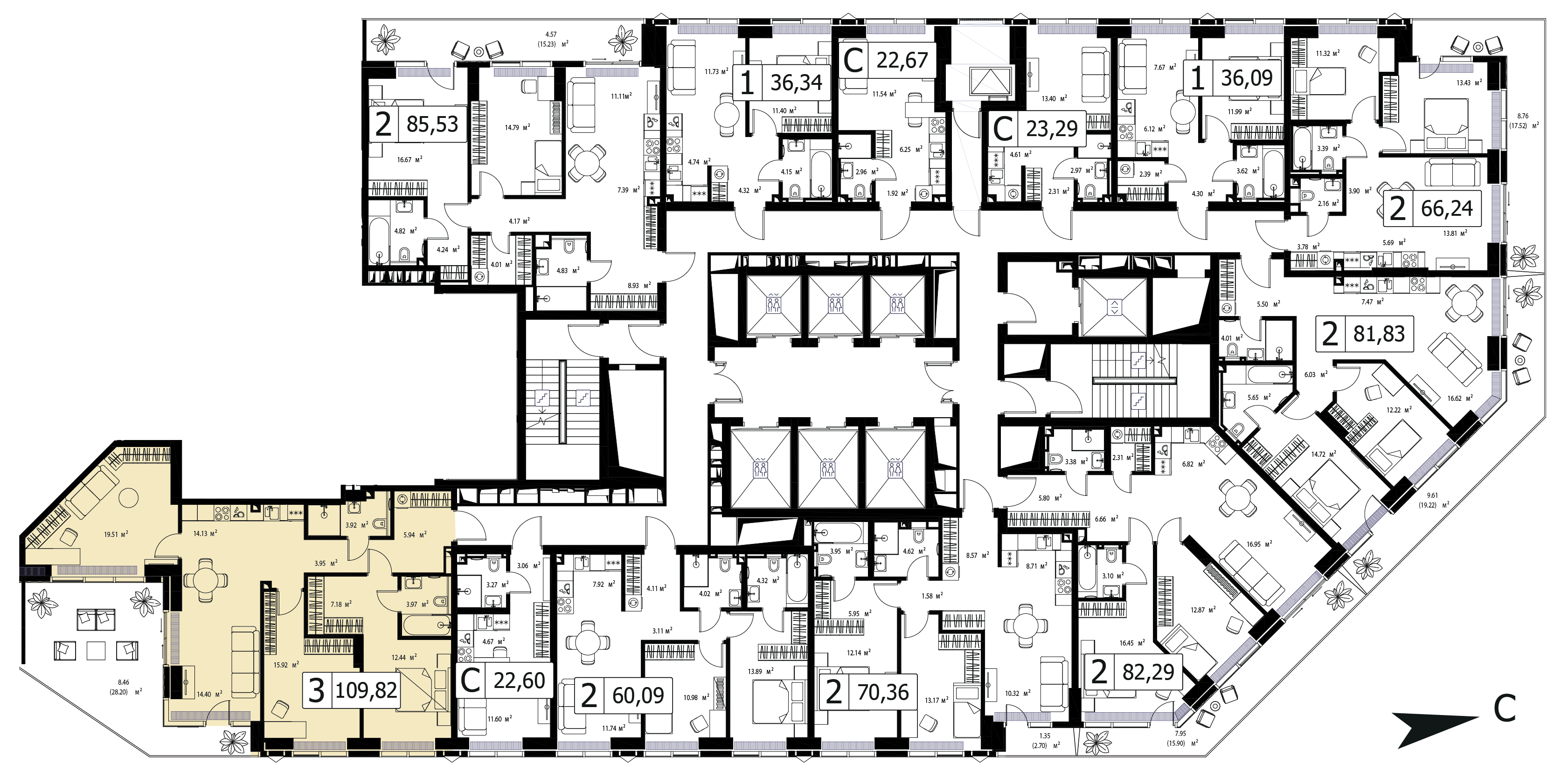 Трехкомнатная квартира №10903, 109.82 м², 9 этаж, «JOIS» (Джойс)