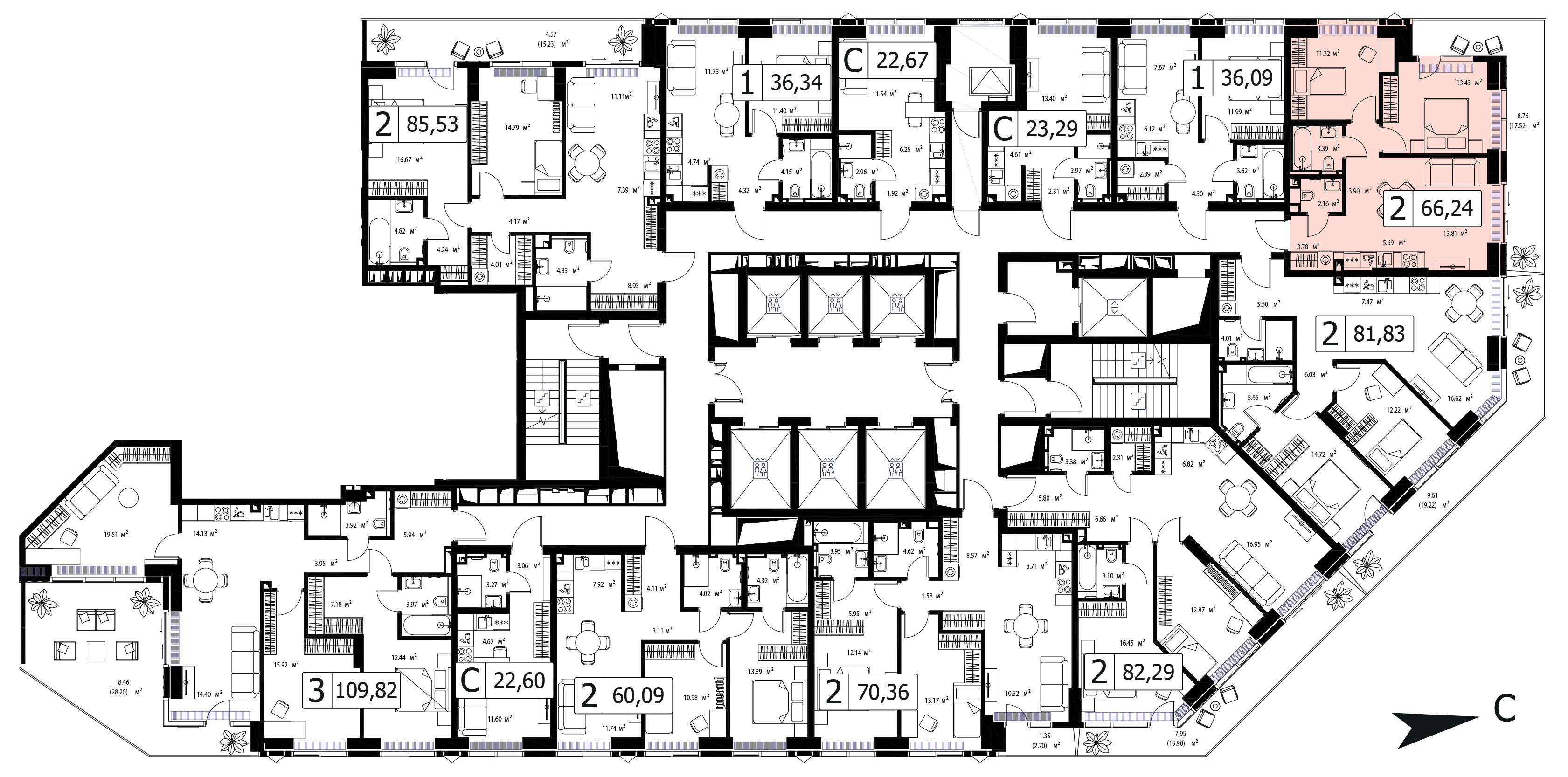 Двухкомнатная квартира №10909, 66.24 м², 9 этаж, «JOIS» (Джойс)