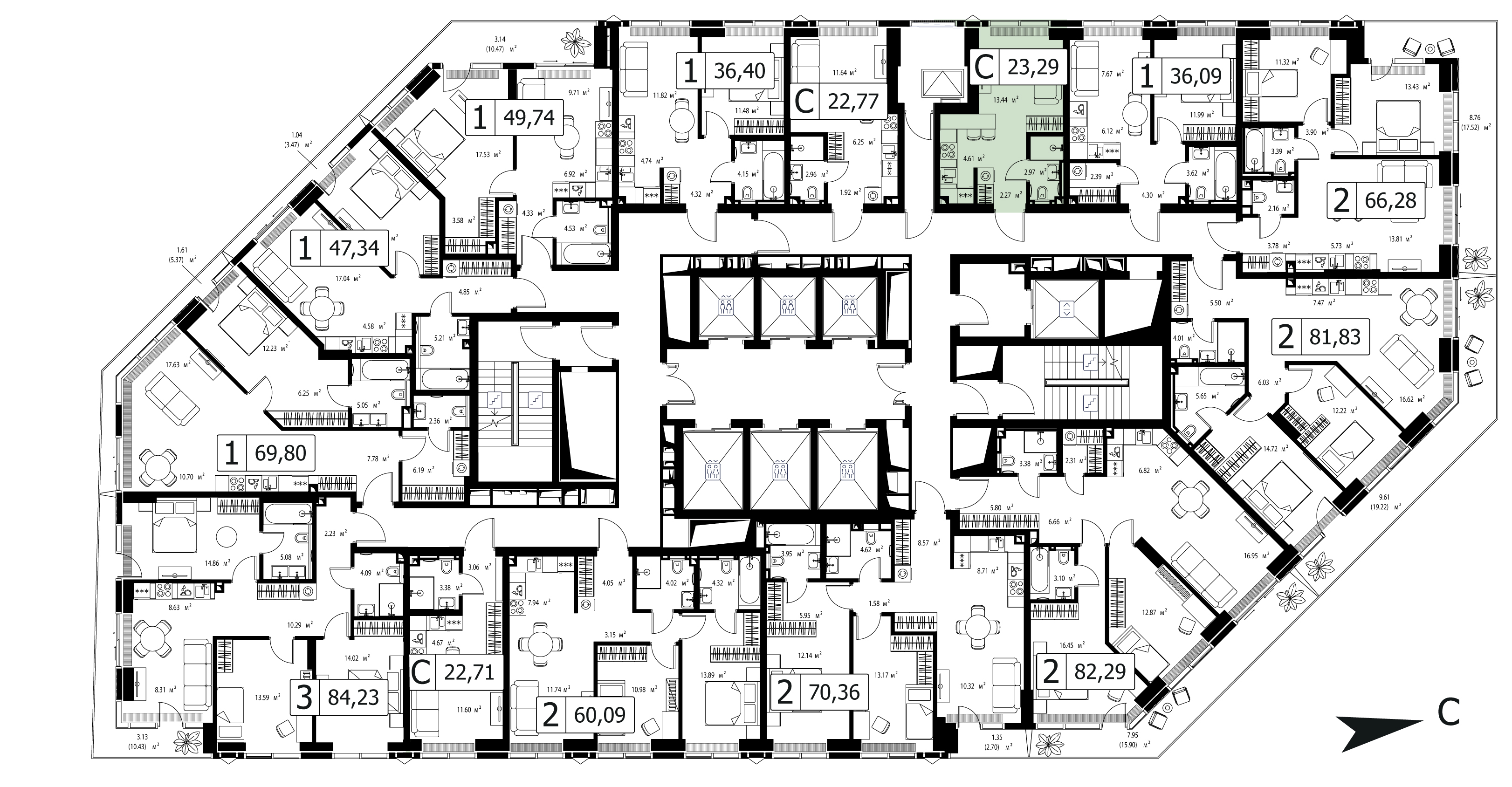 Студия №11909, 23.34 м², 19 этаж, «JOIS» (Джойс)
