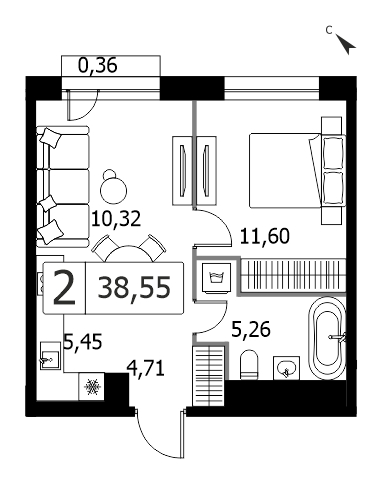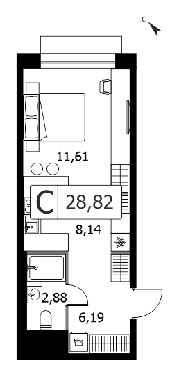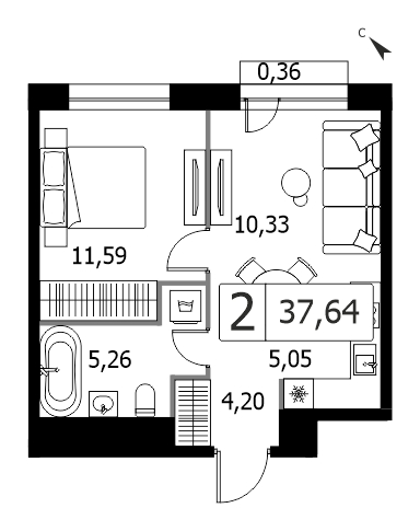 Студия №1021, 33.63 м², 4 этаж, Жилой комплекс «LIFE Варшавская»
