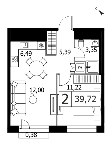Студия №9777, 34.64 м², 2 этаж, Жилой комплекс «LIFE Варшавская»