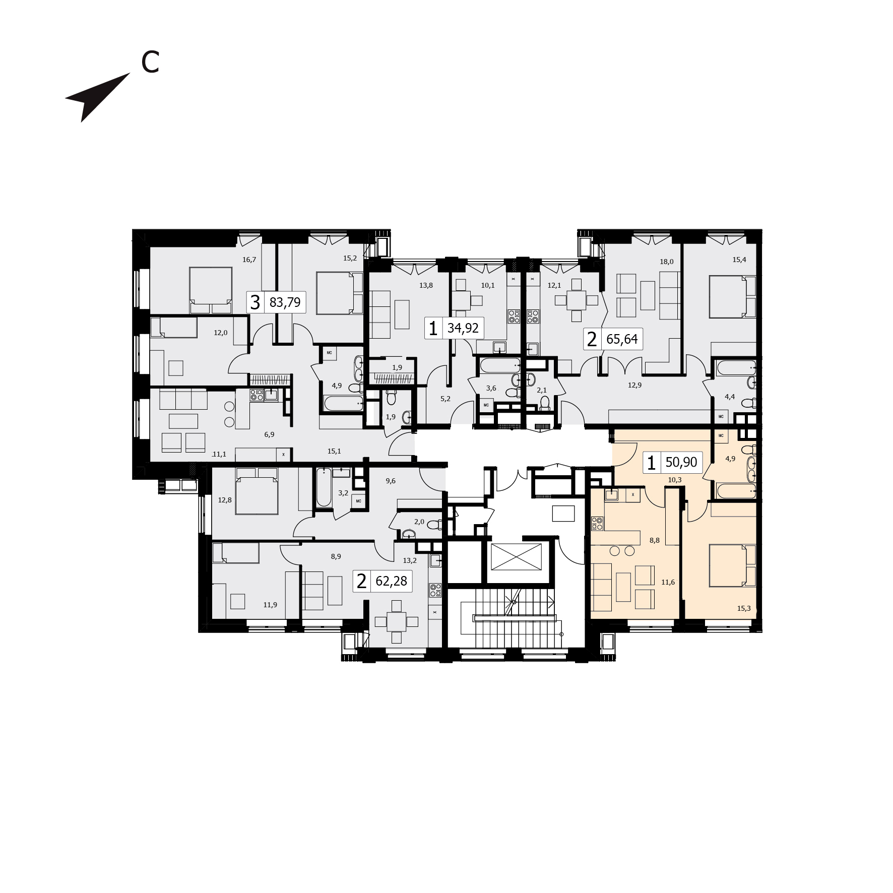 Однокомнатная квартира 50.9 м², 4 этаж, Жилой комплекс «TWICE» (Твайс)