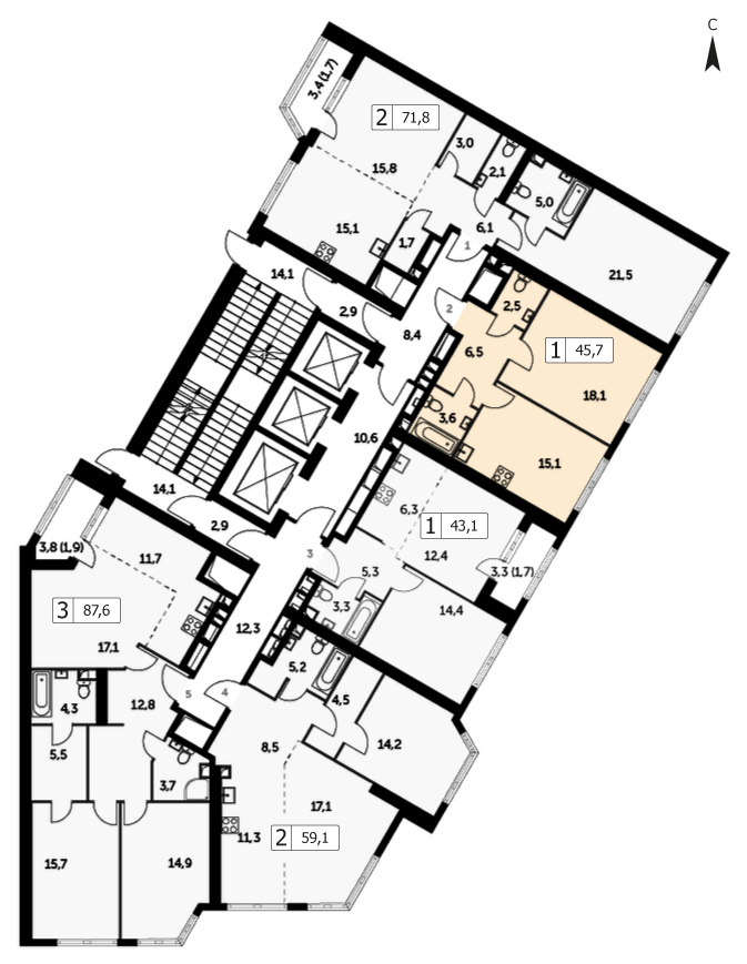 Однокомнатная квартира №257, 45.7 м², 10 этаж, Жилой комплекс «Архитектор»