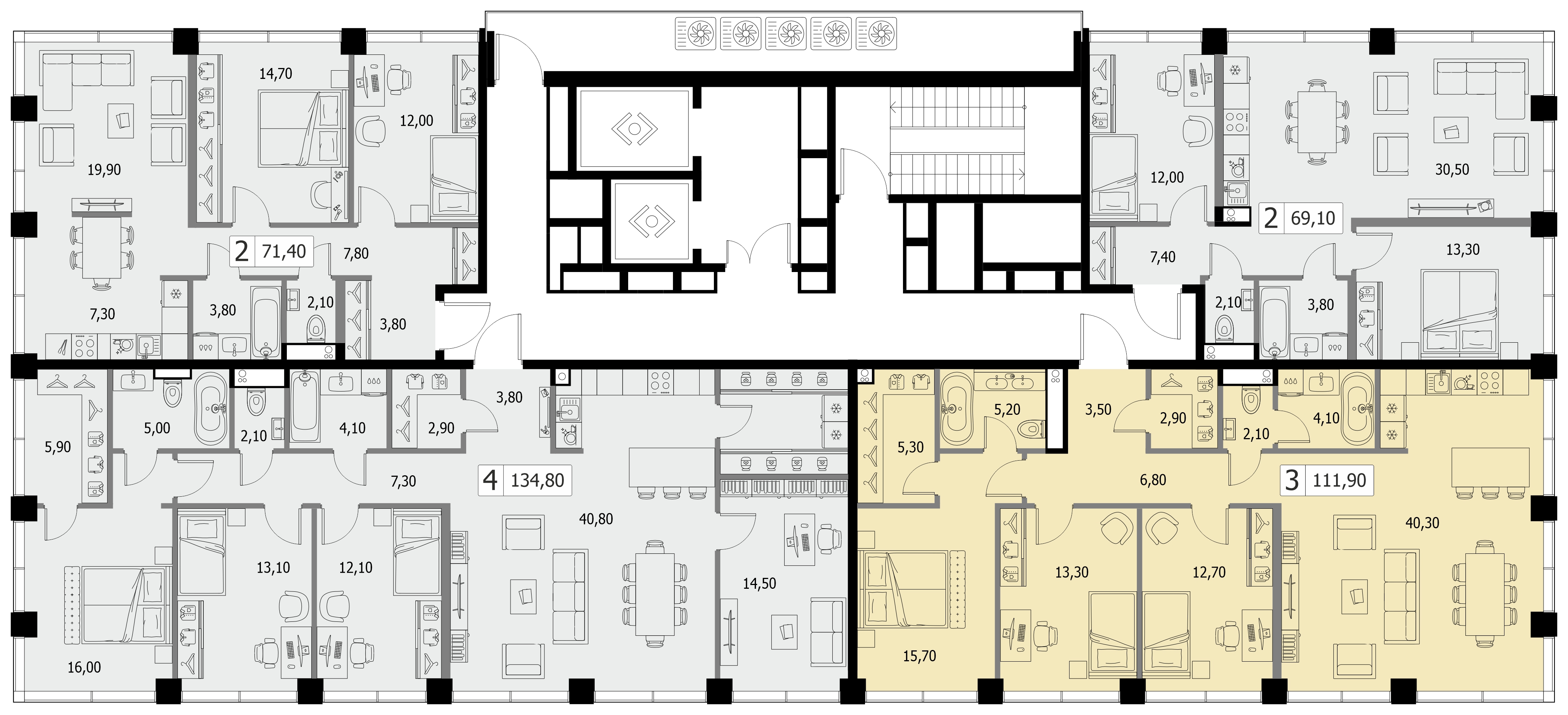 Четырехкомнатная квартира №1138, 134.8 м², 10 этаж, Жилой комплекс «Северный порт»