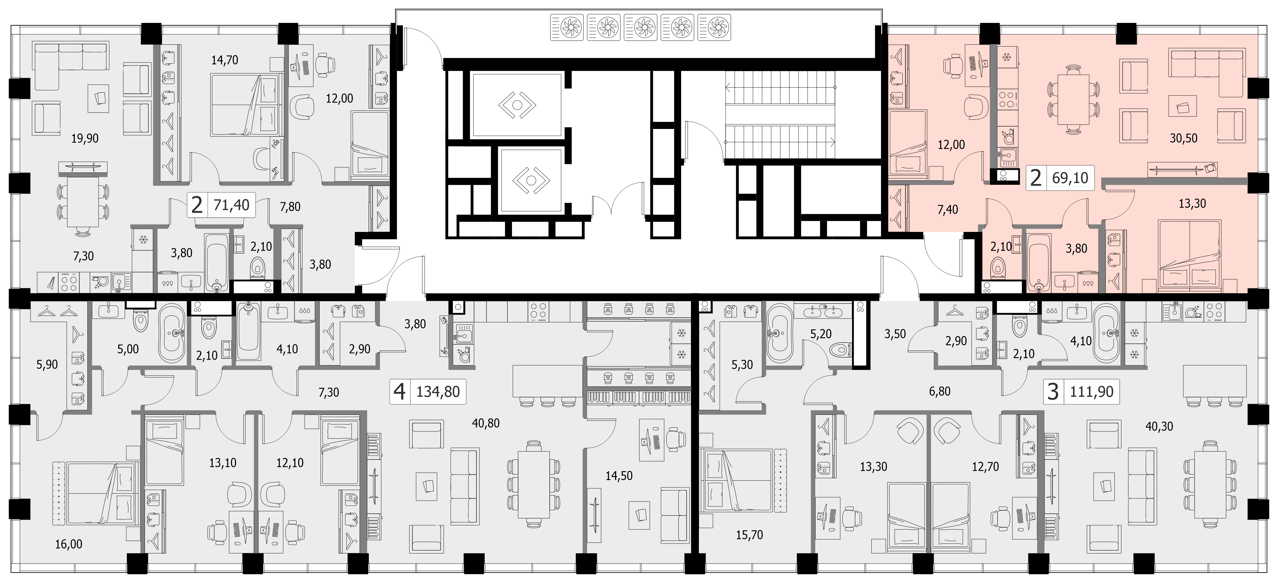 Двухкомнатная квартира №1143, 71.4 м², 11 этаж, Жилой комплекс «Северный порт»