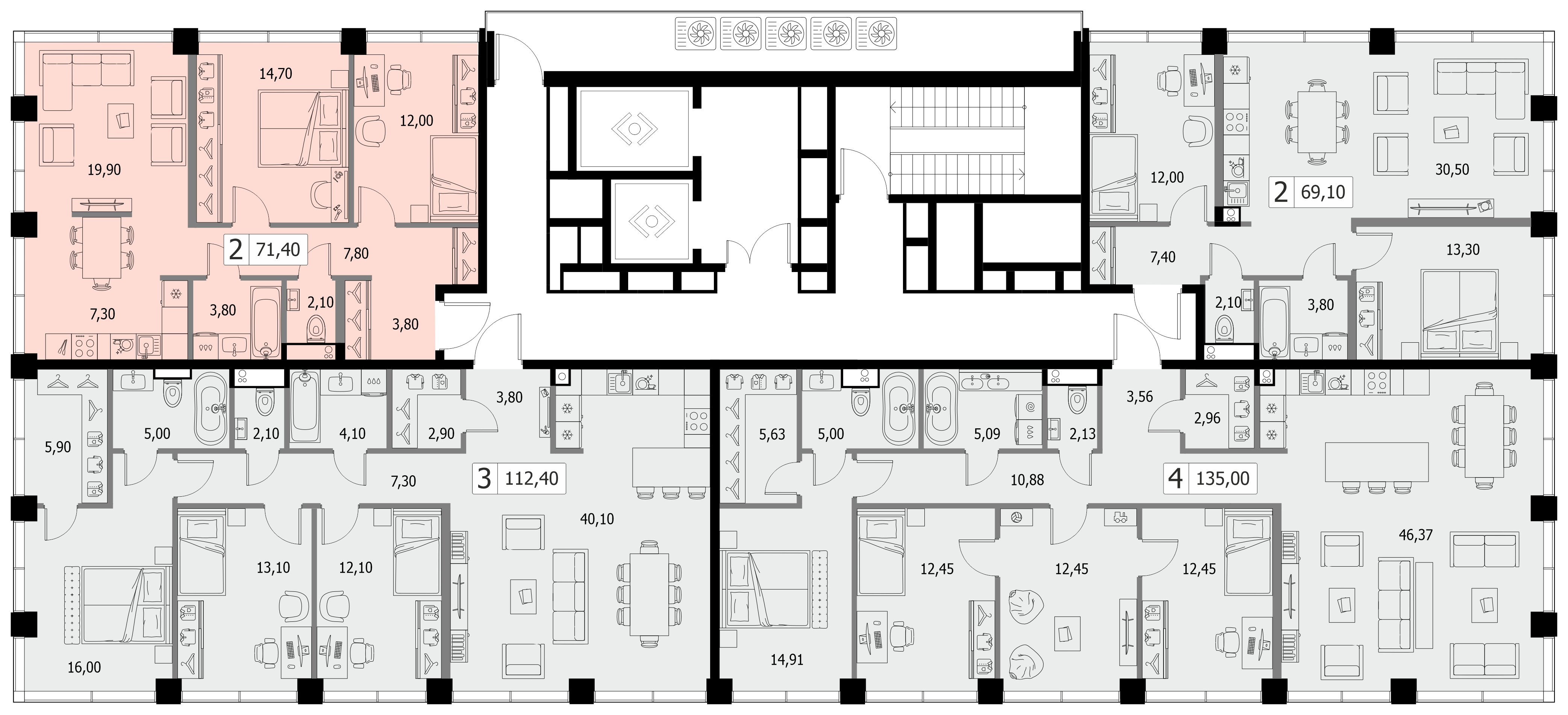 Трехкомнатная квартира №1170, 112.4 м², 18 этаж, Жилой комплекс «Северный порт»