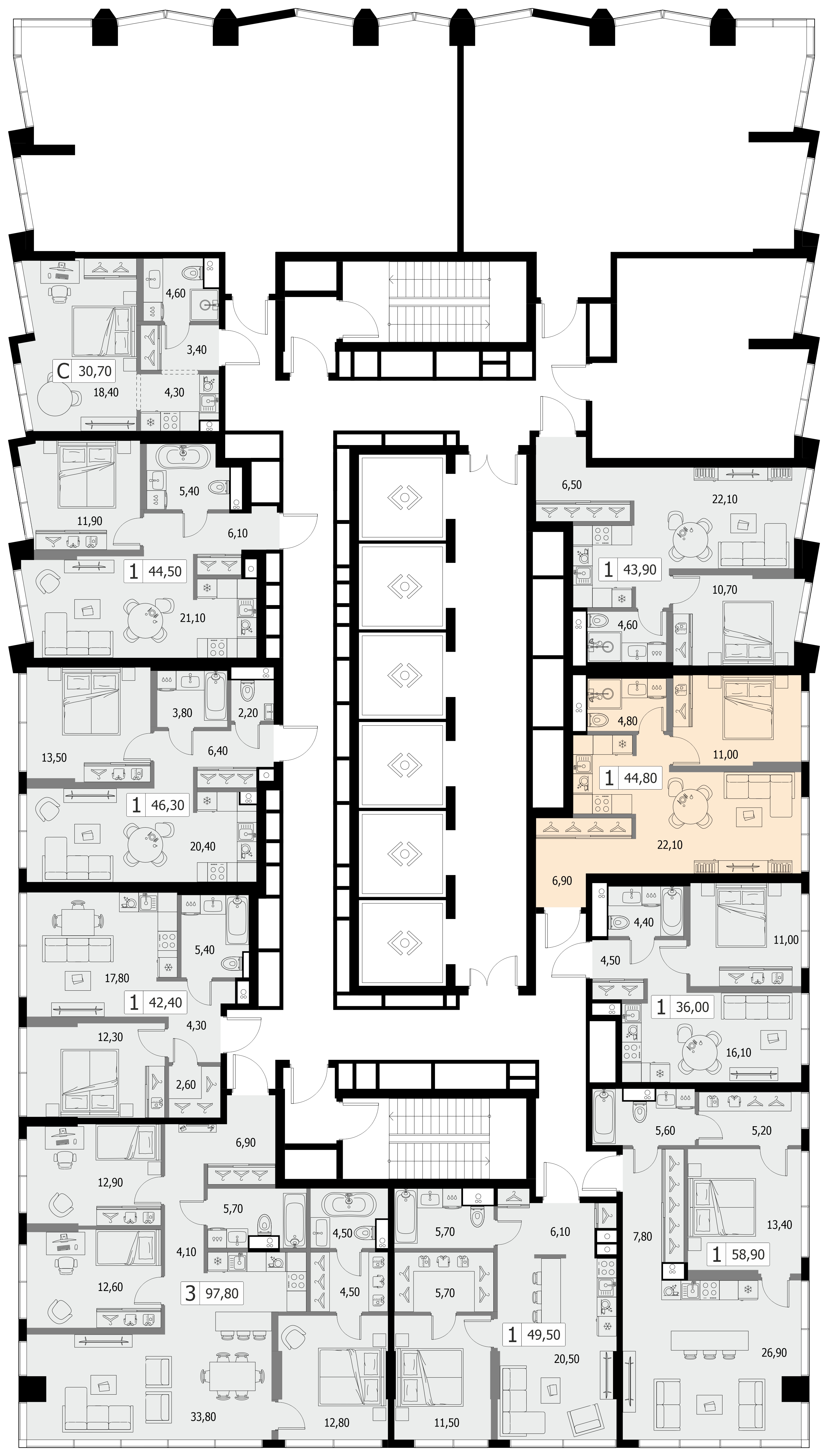 Комфортная однокомнатная квартира квартира площадью 42.7 м² без отделки. Лот расположен на 27 этаже, корпуса 7.3 жилого комплекса «Северный порт».Комплекс находится по адресу: г. Москва, Ленинградское шоссе, срок сдачи 2028г.. Это соединение удобной инфраструктуры городской застройки и зеленых зон отдыха.