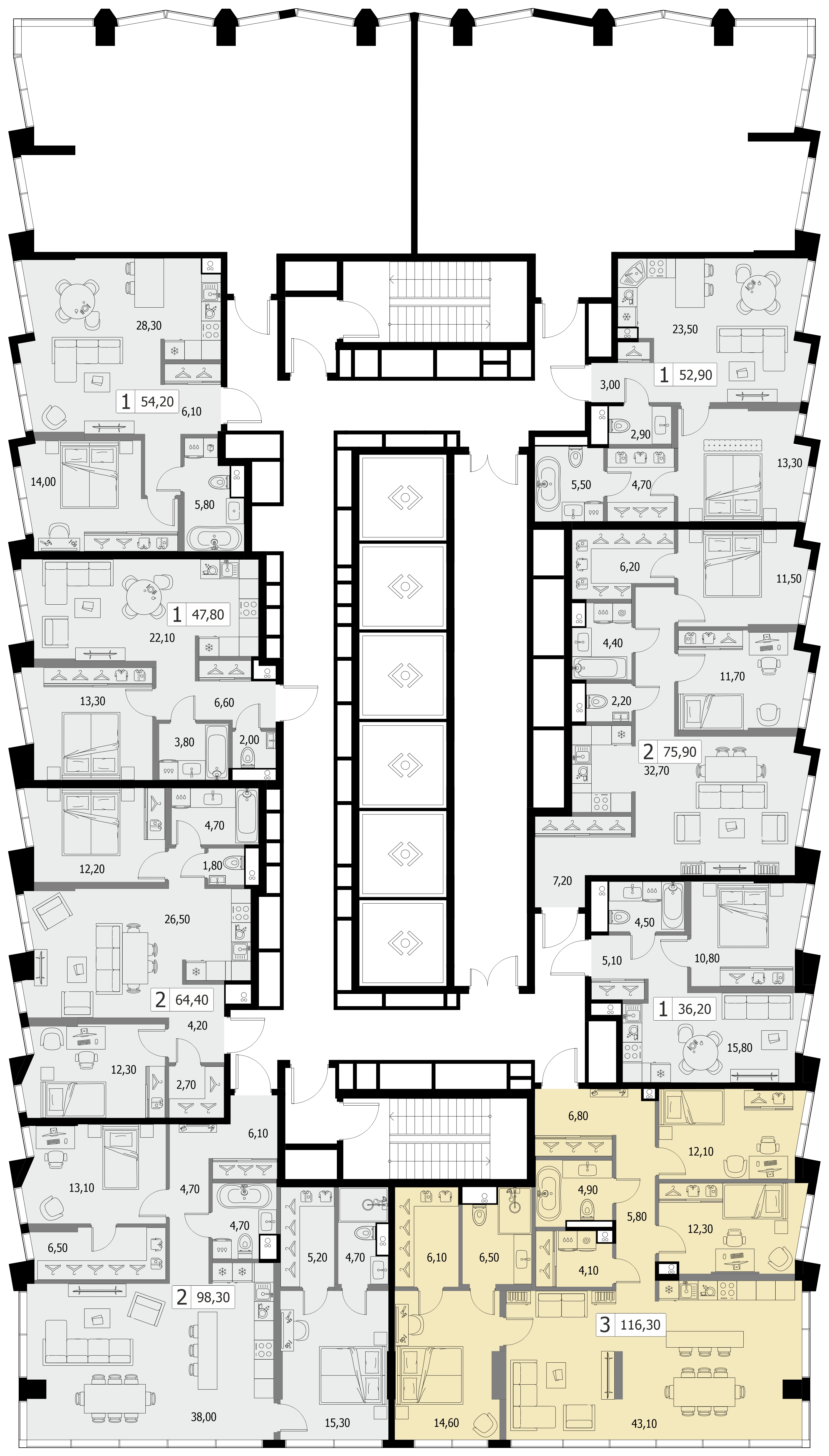 Двухкомнатная квартира №627, 98.2 м², 55 этаж, Жилой комплекс «Северный порт»
