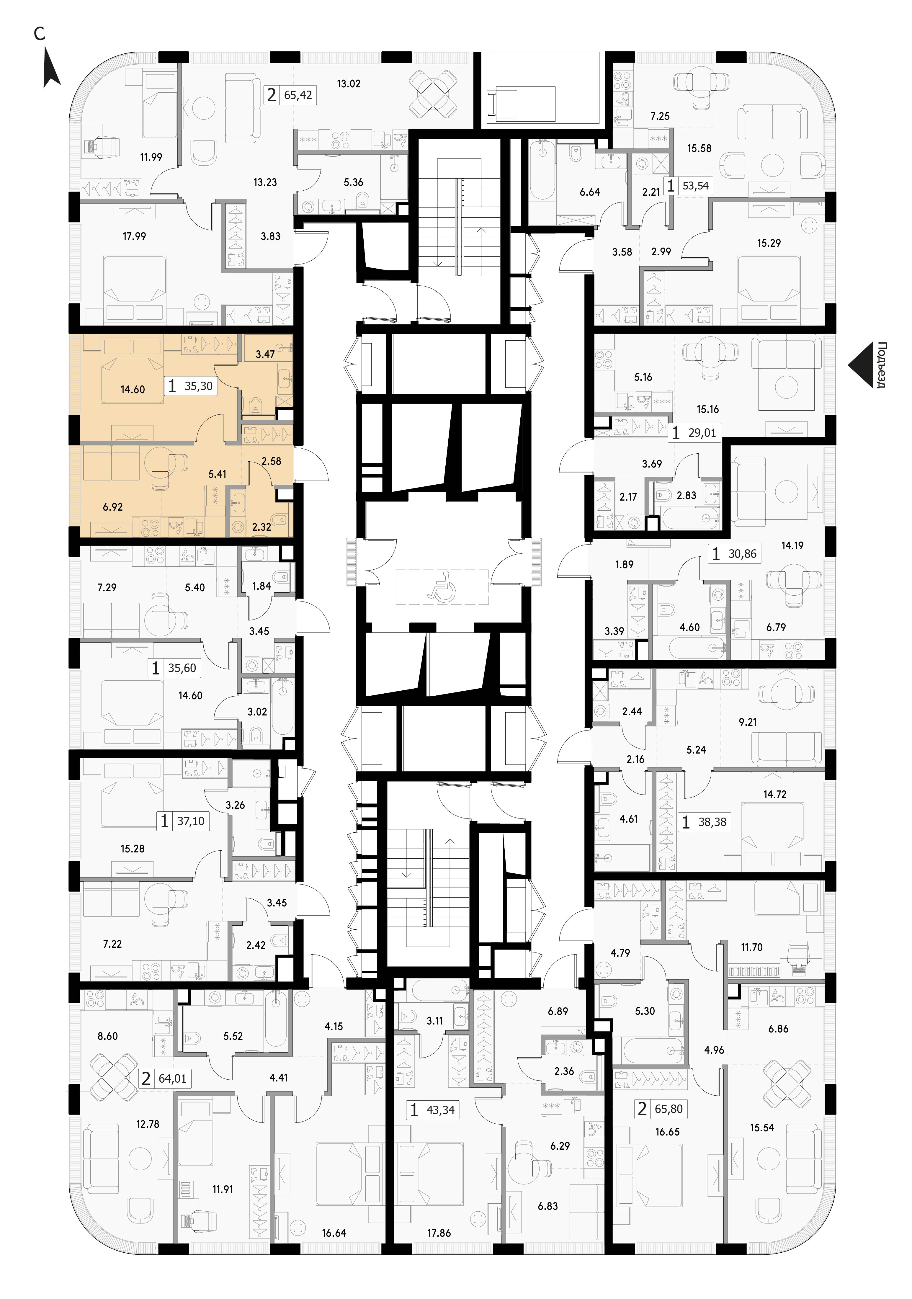 Однокомнатная квартира 35.3 м², 14 этаж, ЖК «ВЕЕР» (VEER)