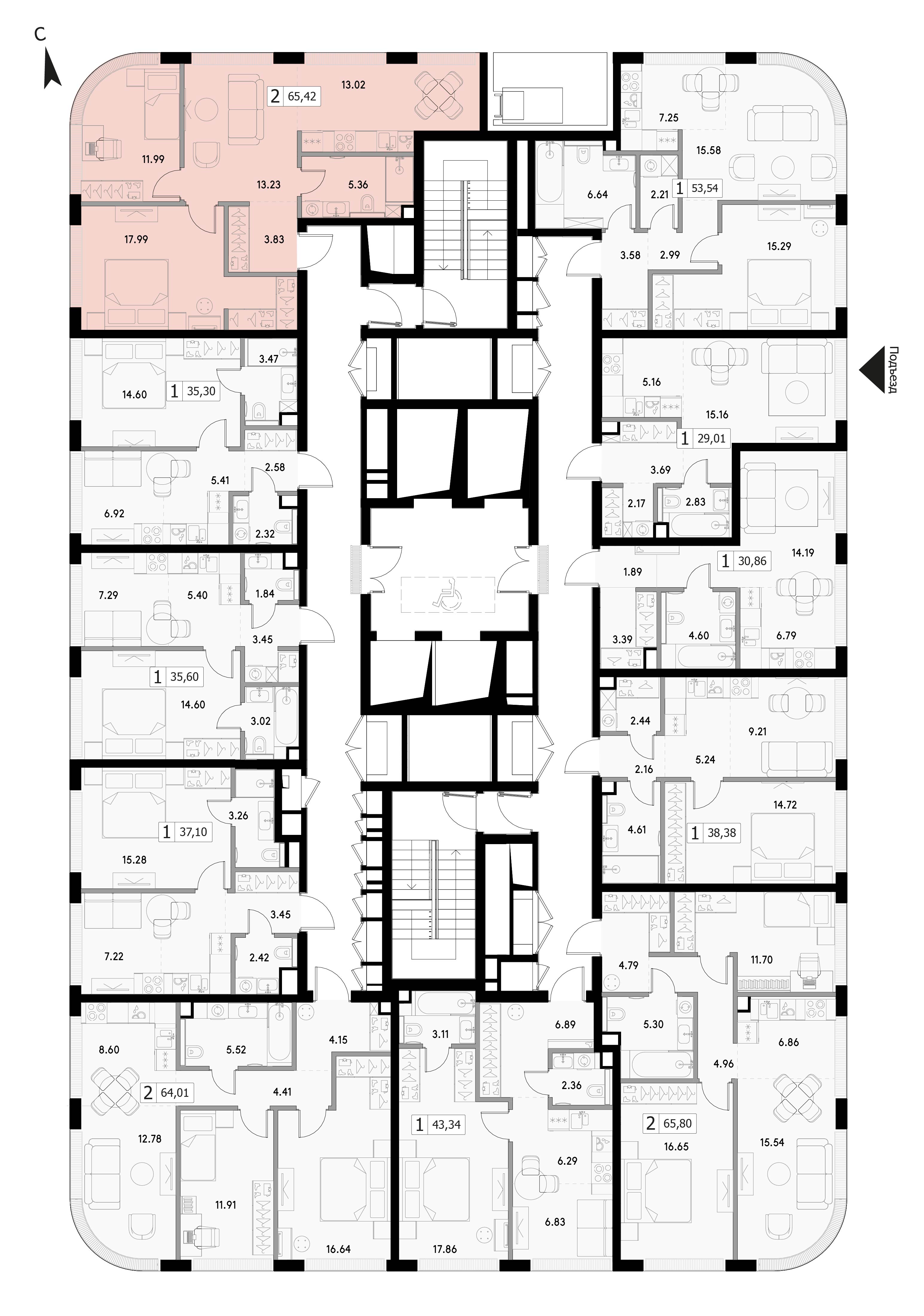 Комфортная двухкомнатная квартира квартира площадью 65.42 м² без отделки. Лот расположен на 14 этаже, корпуса 1.2 ЖК «ВЕЕР» (VEER).Комплекс находится по адресу: г. Москва, ул Верейская. Это соединение удобной инфраструктуры городской застройки и зеленых зон отдыха.