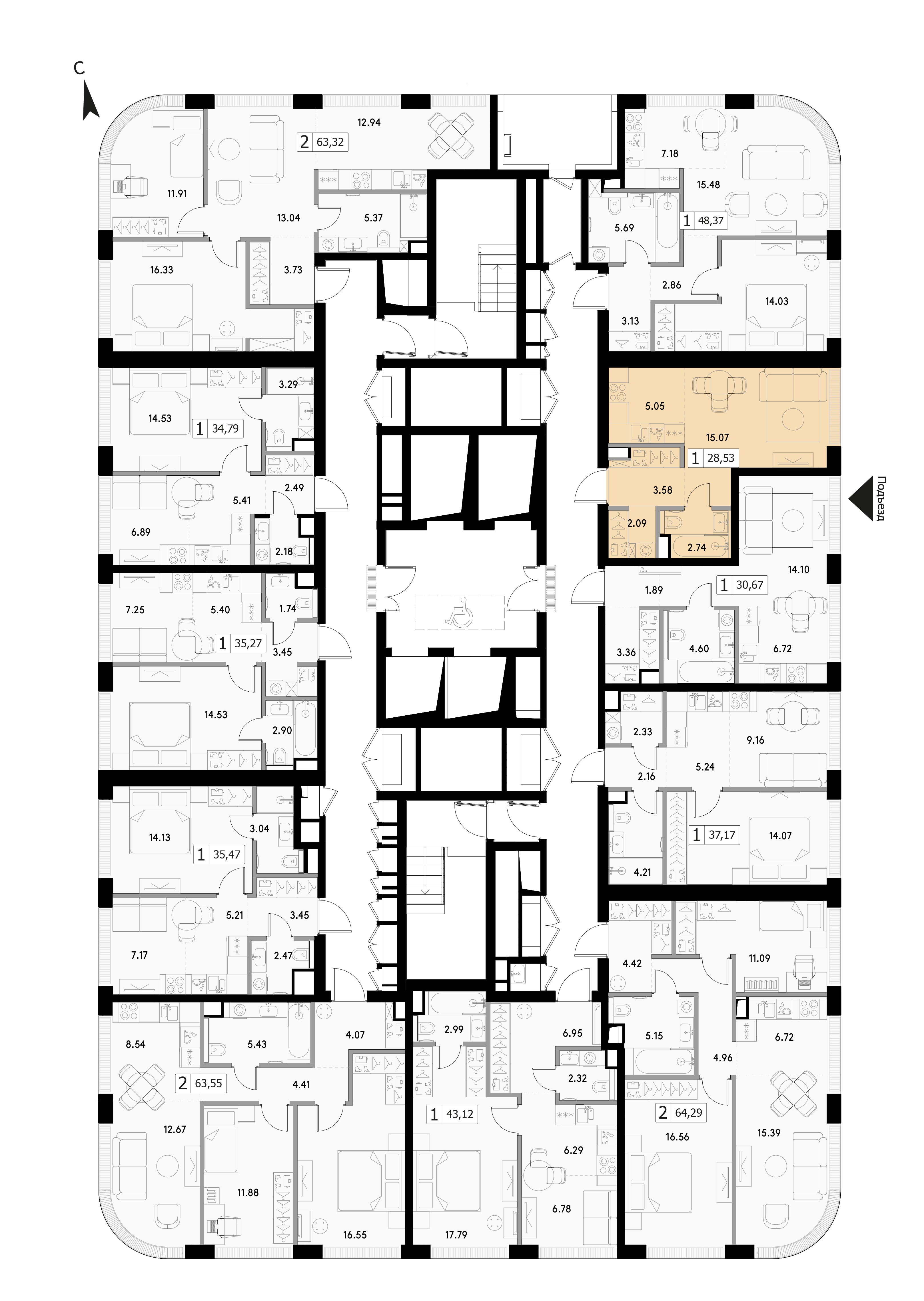 Однокомнатная квартира 28.53 м², 2 этаж, Жилой комплекс «VEER» (Веер)